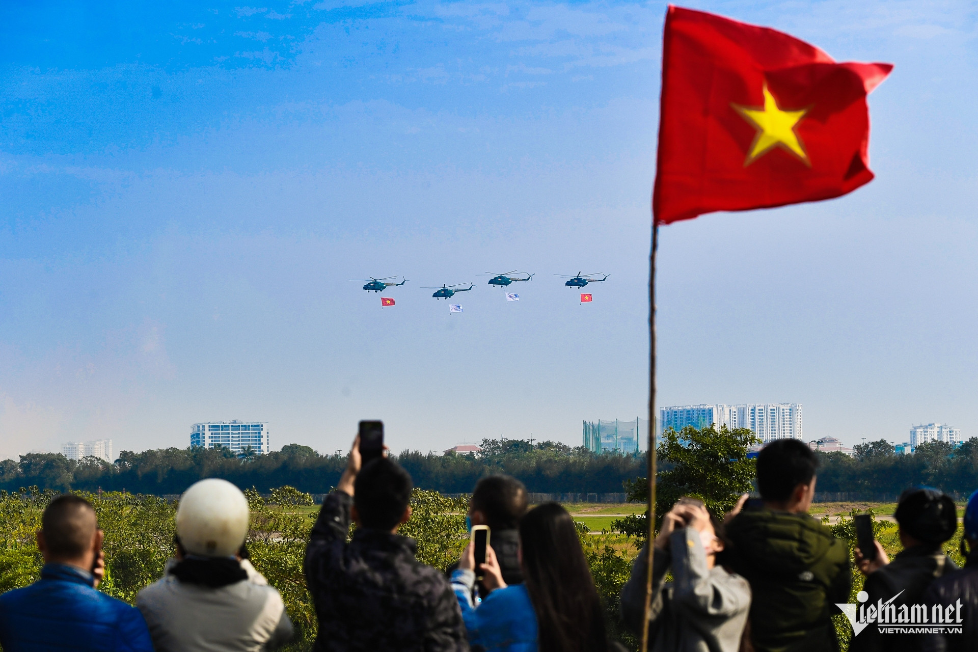 Hình ảnh trực thăng bay lượn trên bầu trời Hà Nội tạo phấn khích cho người xem. Mỗi cú xoay chuyển, tăng tốc hay giảm tốc đều cho thấy khả năng vượt trội của các phương tiện này trong việc hỗ trợ tác chiến và cứu hộ.