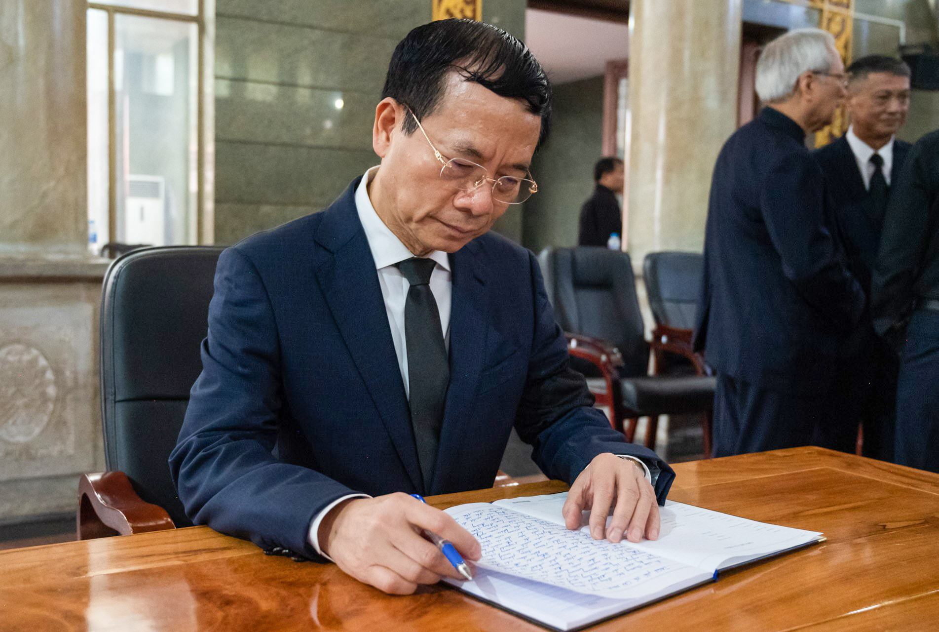 Bộ trưởng Bộ TT&TT Nguyễn Mạnh Hùng ghi sổ tang.