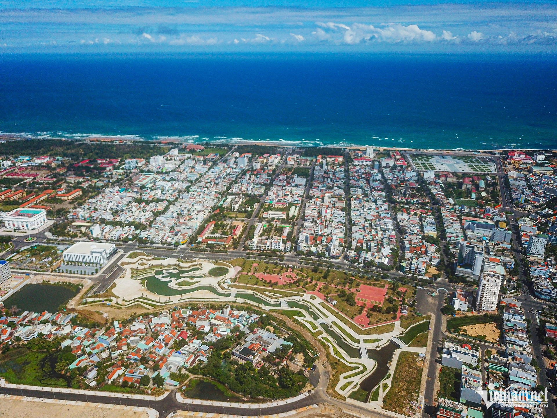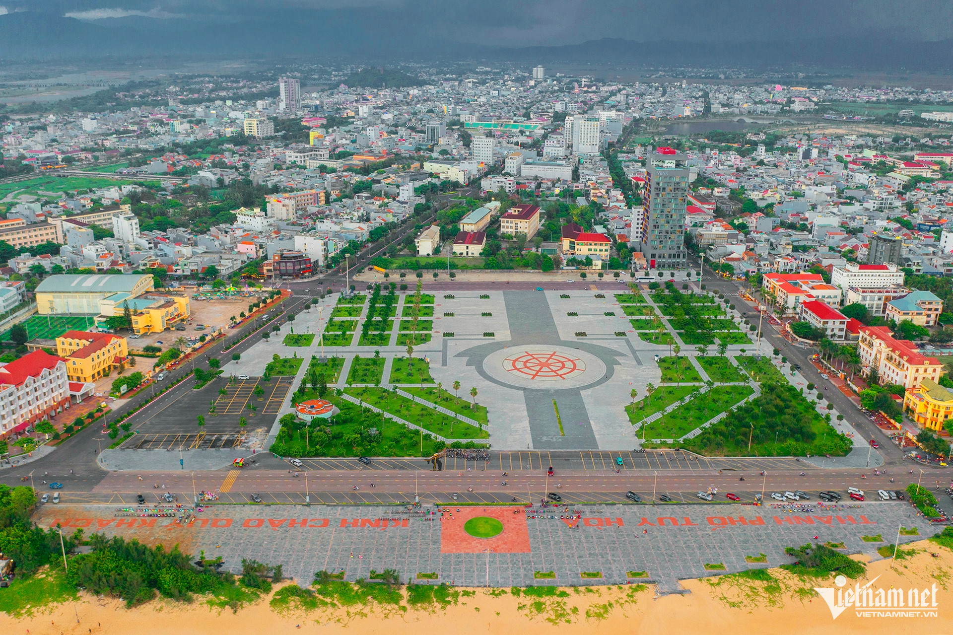 Tuy Hòa có đường biển dài hơn 30km. Suốt trục đường hình thành nhiều công viên, quảng trường, khu vui chơi. Trong ảnh là quảng trường 1 tháng 4, nơi thường xuyên tổ chức các sự kiện lớn của tỉnh. Trục đường này còn có nhiều dự án resort đã và đang hình thành.