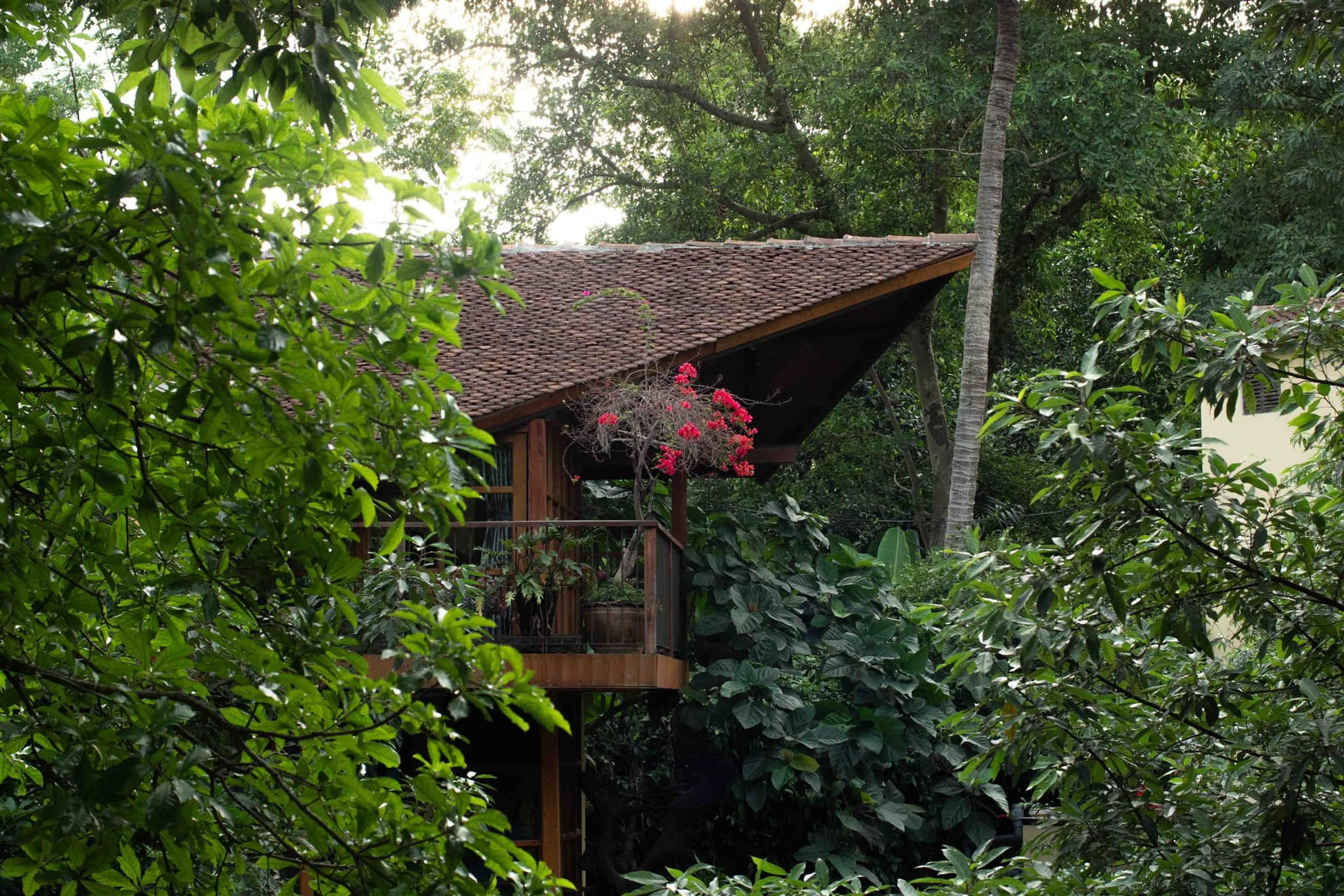 Lối vào nhà có hai hàng bưởi cổ. Tầng 1 cho mọi người trải nghiệm cuộc sống dưới bóng cây. Tầng 2 trải nghiệm cuộc sống như trên ngọn cây, có view bốn hướng, hoa thơm ngát. Nội thất bên trong cũng được lấy tinh thần chủ đạo là rồng – một trong tứ linh của văn hóa truyền thống Việt Nam.