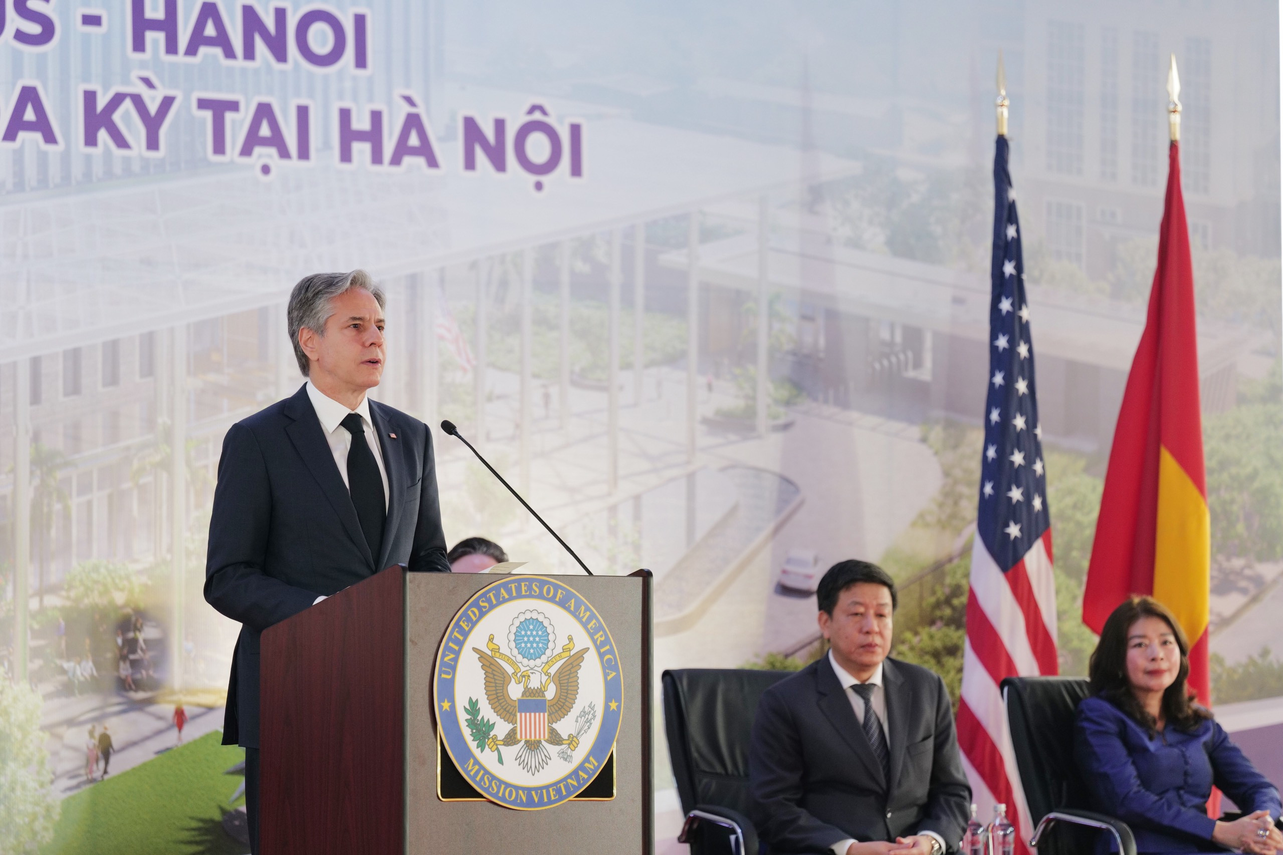 Kết thúc phát biểu, Ngoại trưởng Mỹ chia sẻ: "Năm 1995, khi Ngoại trưởng Christopher khai trương tòa nhà Đại sứ quán của chúng tôi tại Hà Nội, ông đã nói về việc xây dựng cầu nối hợp tác giữa hai quốc gia chúng ta. Vào thời điểm đó, không ai có thể hình dung về những bước phát triển mạnh mẽ trong mối quan hệ giữa hai nước, sau gần ba thập kỷ, chúng ta đều thấy rõ. Tòa nhà Đại sứ quán mới cũng chính là nhịp cầu giữa hai nước. Với khu phức hợp mới này, chúng tôi sẽ có thể thúc đẩy nhiều kết nối hơn nữa, cùng với đó là các mối quan hệ, sự đổi mới và cơ hội".