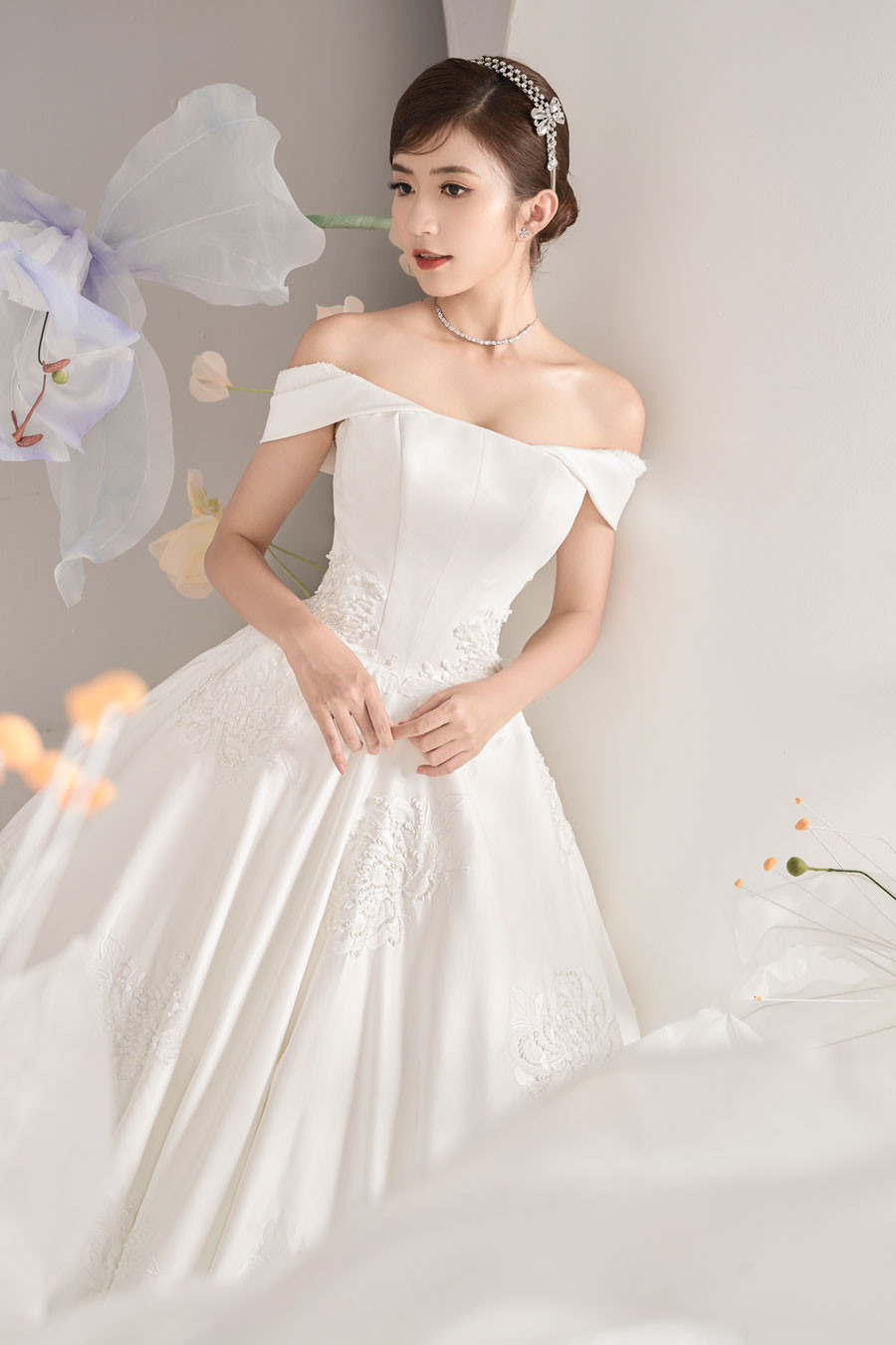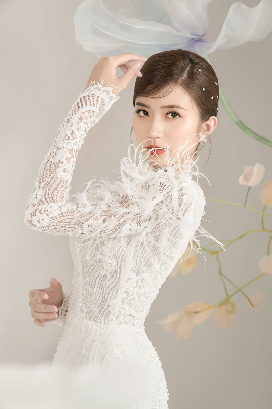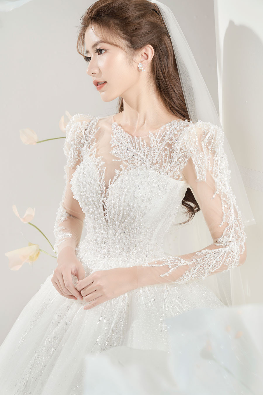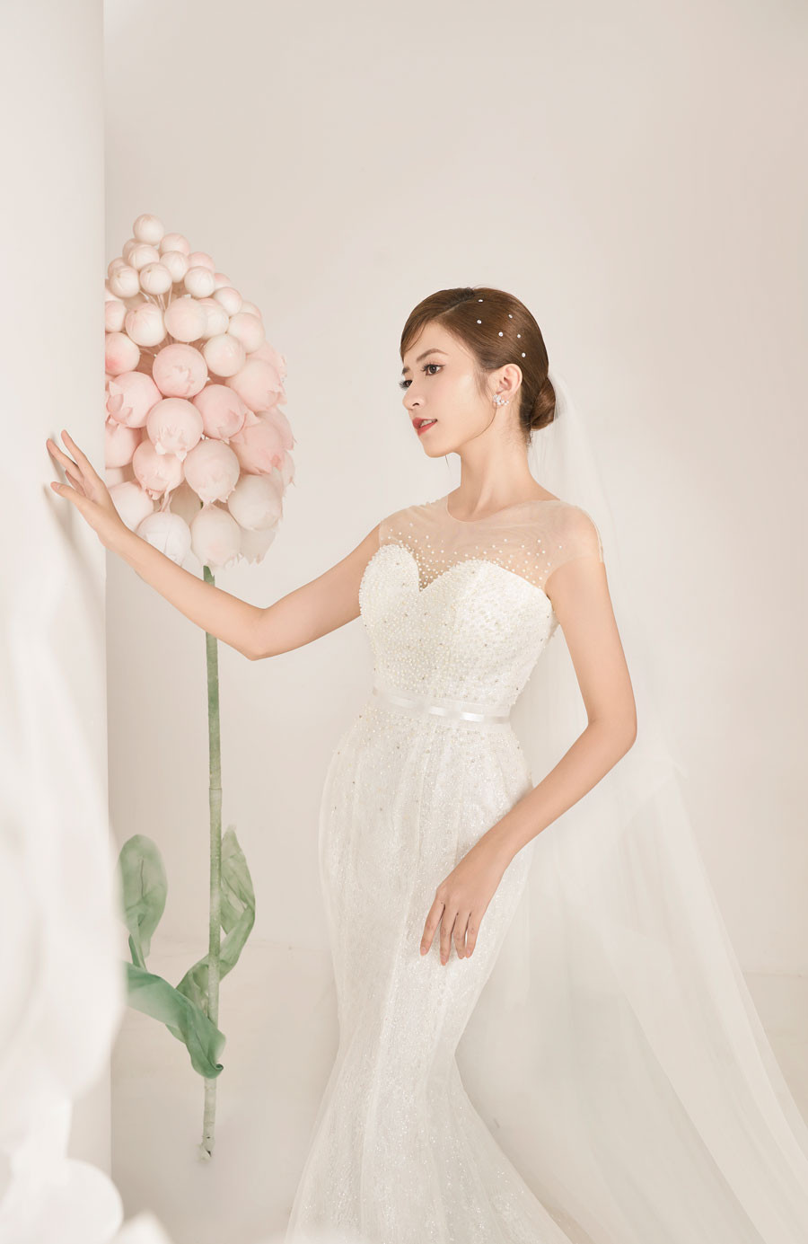 Diễn viên Ngọc Huyền hoá thân thành cô dâu trong BST áo cưới của NTK Quyên Nguyễn. Những thiết kế được làm bằng chất liệu sequin lấp lánh, ren, lụa được lấy cảm hứng từ các sắc thái của bông hoa ly trắng.Váy phom đuôi cá tựa như đóa hoa đang chúm chím, váy dáng chữ A là lúc bông hoa hé nở và váy xòe bồng bềnh chính là đóa hoa ly bung nở căng tràn nhựa sống. NTK Quyên Nguyễn sử dụng kỹ thuật dựng phom corset định hình 16 gọng để siết eo của cô dâu giảm 6-8 cm, giúp các nàng dâu hiện thực hóa ước mơ có vòng eo con kiến. Ngọc Huyền hoá cô dâu đẹp tinh khôi. Vốn là diễn viên tay ngang và theo học ngành mỹ thuật nhưng Ngọc Huyền được nhiều người biết đến với tư cách người mẫu ảnh trước đó. Với lối trang điểm nhẹ và thần thái tự nhiên, Ngọc Huyền được khen ngợi hợp với hình ảnh nhẹ nhàng, cuốn hút. Cô 'em út' của Thương ngày nắng vềhoá cô dâu vô cùng xinh đẹp. Dù ở phong cách nào thì Ngọc Huyền vẫn toát vẻ đẹp dịu dàng, nữ tính.Ngọc Huyền sinh năm 1999 và lần đầu đóng phim. 'Thương ngày nắng về' là bộ phim đầu tiên cô tham gia. Nữ diễn viên sẽ chia tay vai diễn khi phim phát sóng tập cuối vào tối 3/8.