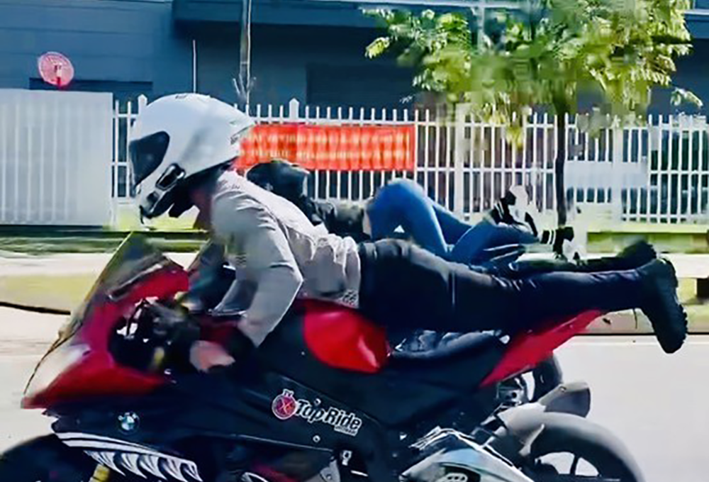 Lúc này, Ngọc Trinh đã thể hiện các động tác lái xe nguy hiểm, tư thế phản cảm, không mặc đồ bảo hộ, nằm, quỳ gối trên yên xe…., cho quay video biên tập lại rồi đăng tải lên mạng xã hội với số lượng người theo dõi lớn. Hành vi này gây tác động tiêu cực, ảnh hưởng xấu đến an ninh, trật tự trên không gian mạng.