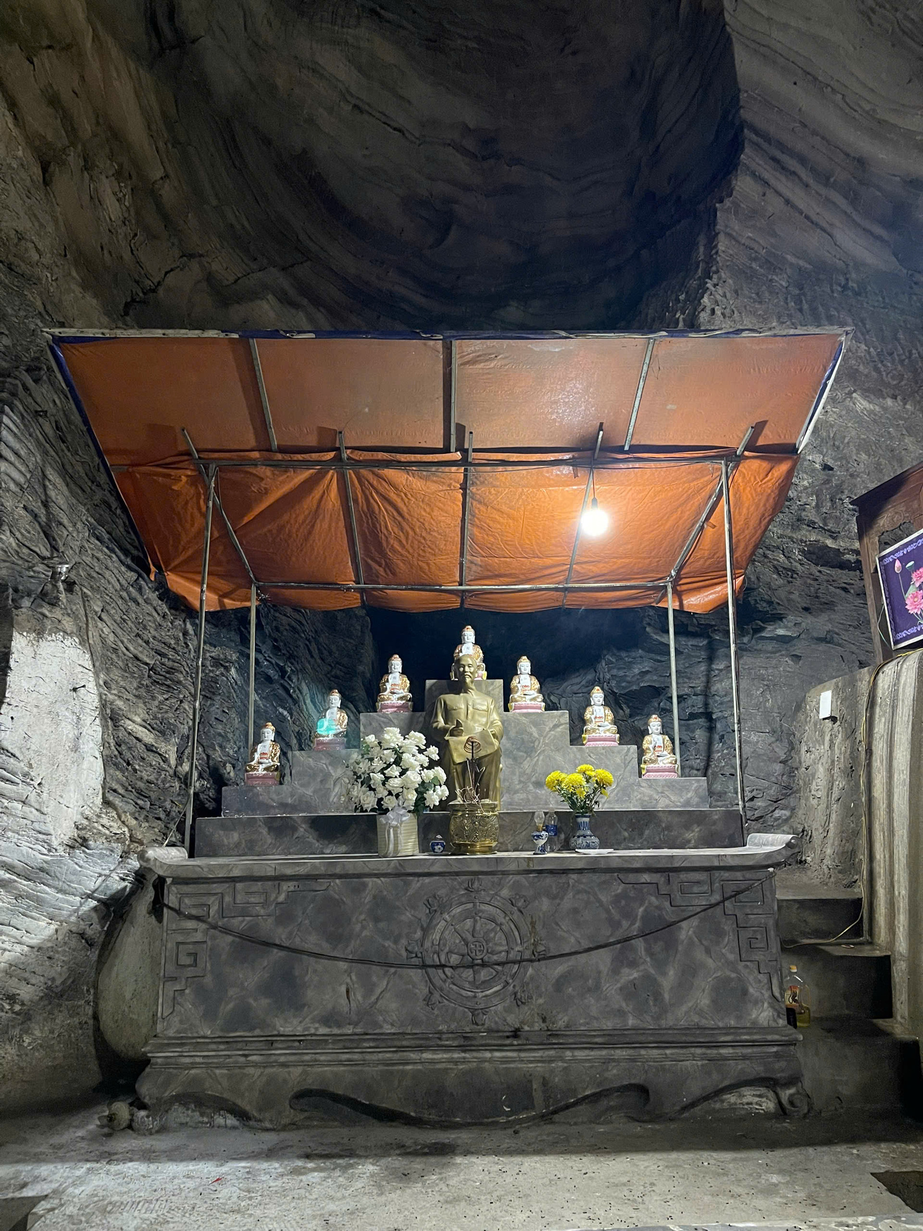 Chùa Thượng có nhiều ngách ăn sâu vào lòng núi đá, tạo cảm giác huyền bí và linh thiêng. Gian cao nhất trong chùa thờ Phật Thích Ca. Ở gian trung, trên bệ cao nhất có ảnh Bác Hồ.