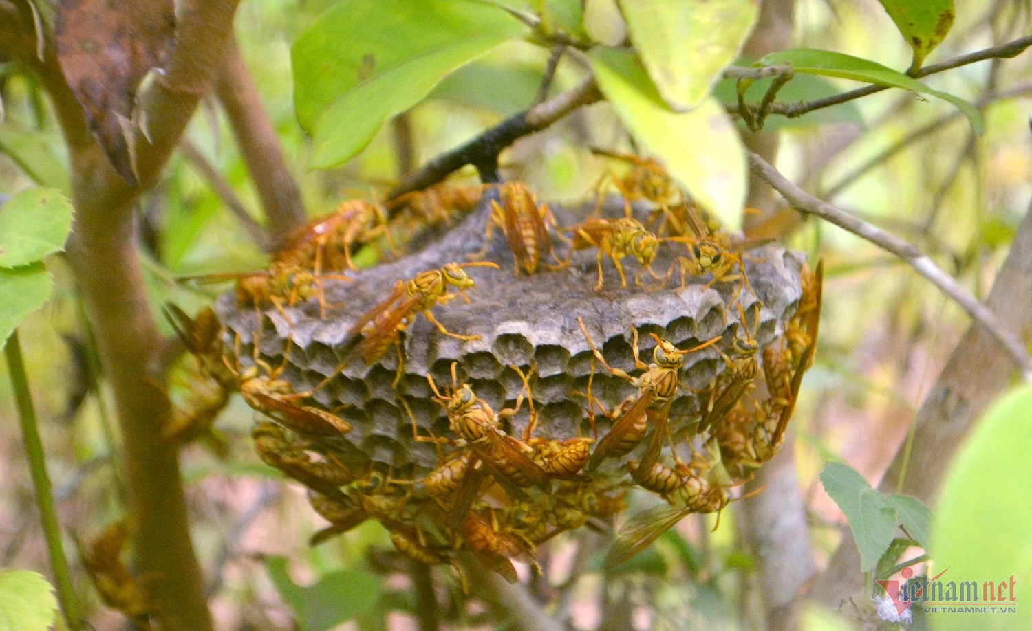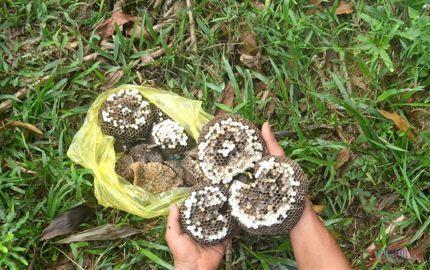 “Tôi chỉ cần từ 1 đến 5 phút là đã lấy được tổ ong. Với tổ ở nơi quá rậm phải dùng dao phát quang, tôi sẽ lâu hơn đôi chút. Mỗi ngày rong ruổi như vậy cũng kiếm được 30 - 40 tổ”, anh Hiệp cho hay.