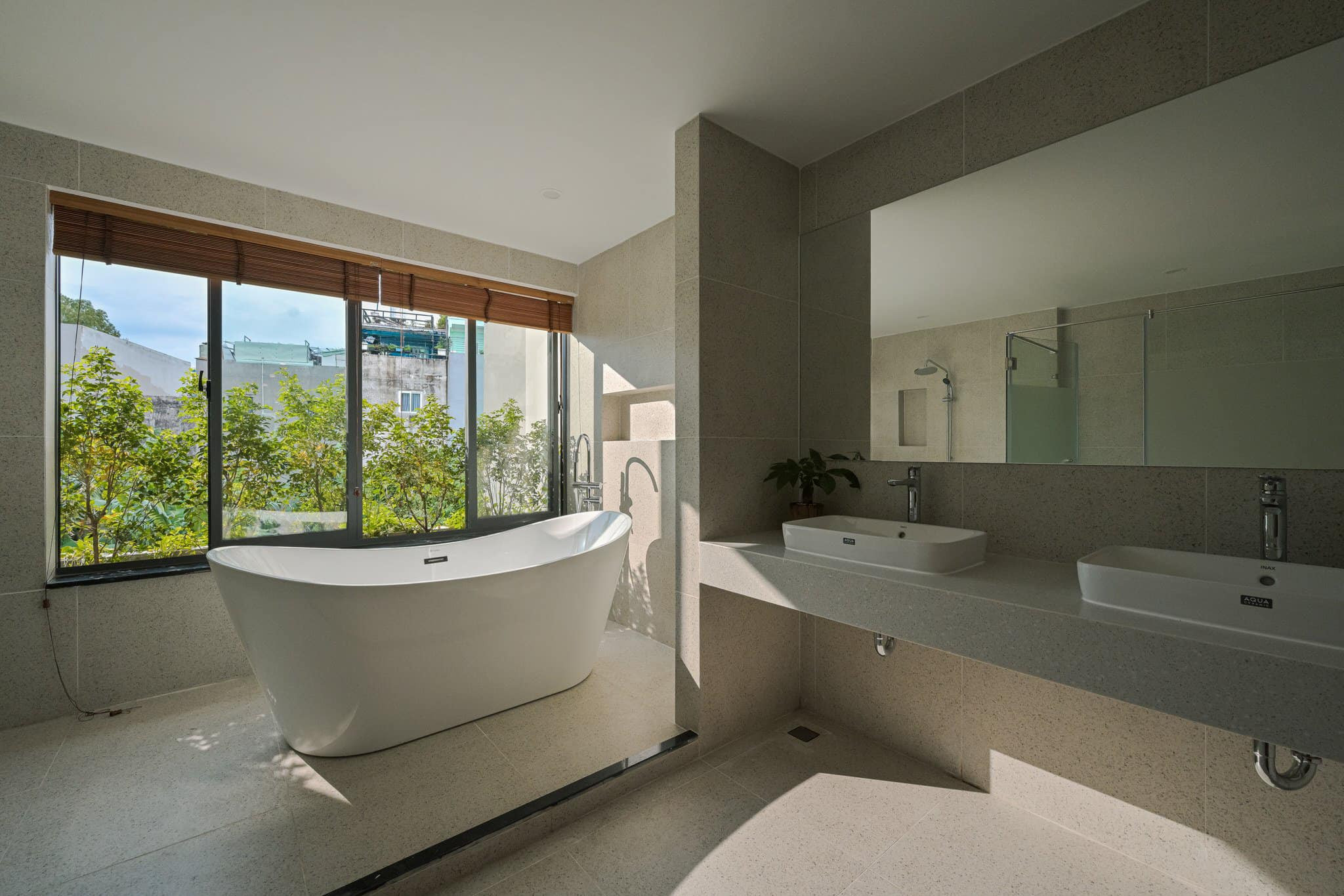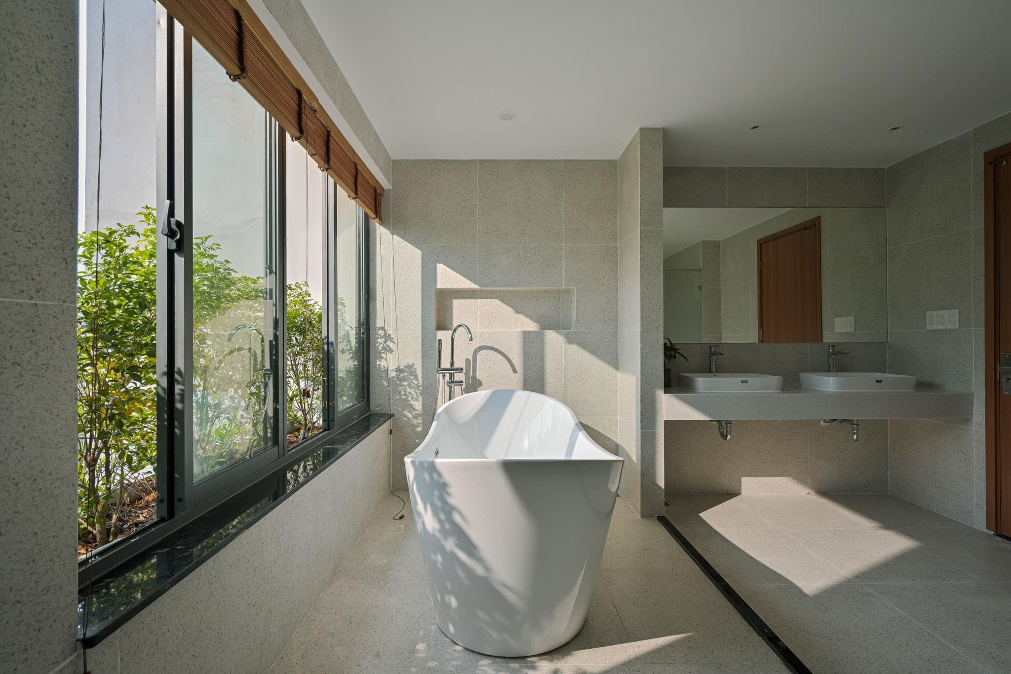 Chốn nghỉ dưỡng tại gia chắc chắn không thể thiếu chiếc bồn tắm chill bên khung cửa sổ.