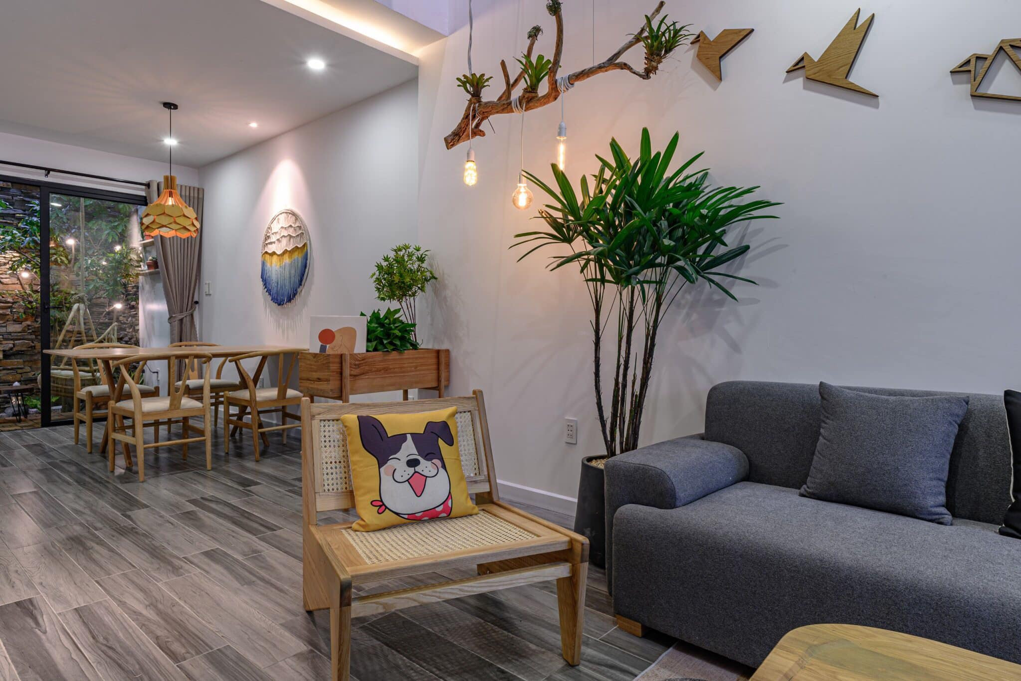 Ngôi nhà 62m2 ở Đà Nẵng của chị Quỳnh An được xây dựng từ ý tưởng “chim bay về tổ”, mang ý nghĩa đoàn tụ, sum vầy với không gian sống tươi mát, thư giãn thú vị. Nhà có 4 phòng ngủ được xây lệch tầng nên phòng ngủ nào cũng rộng. Ngoài ra, nhà còn có một khoảng sân để xe hơi, sân vườn và giếng trời phía sau.