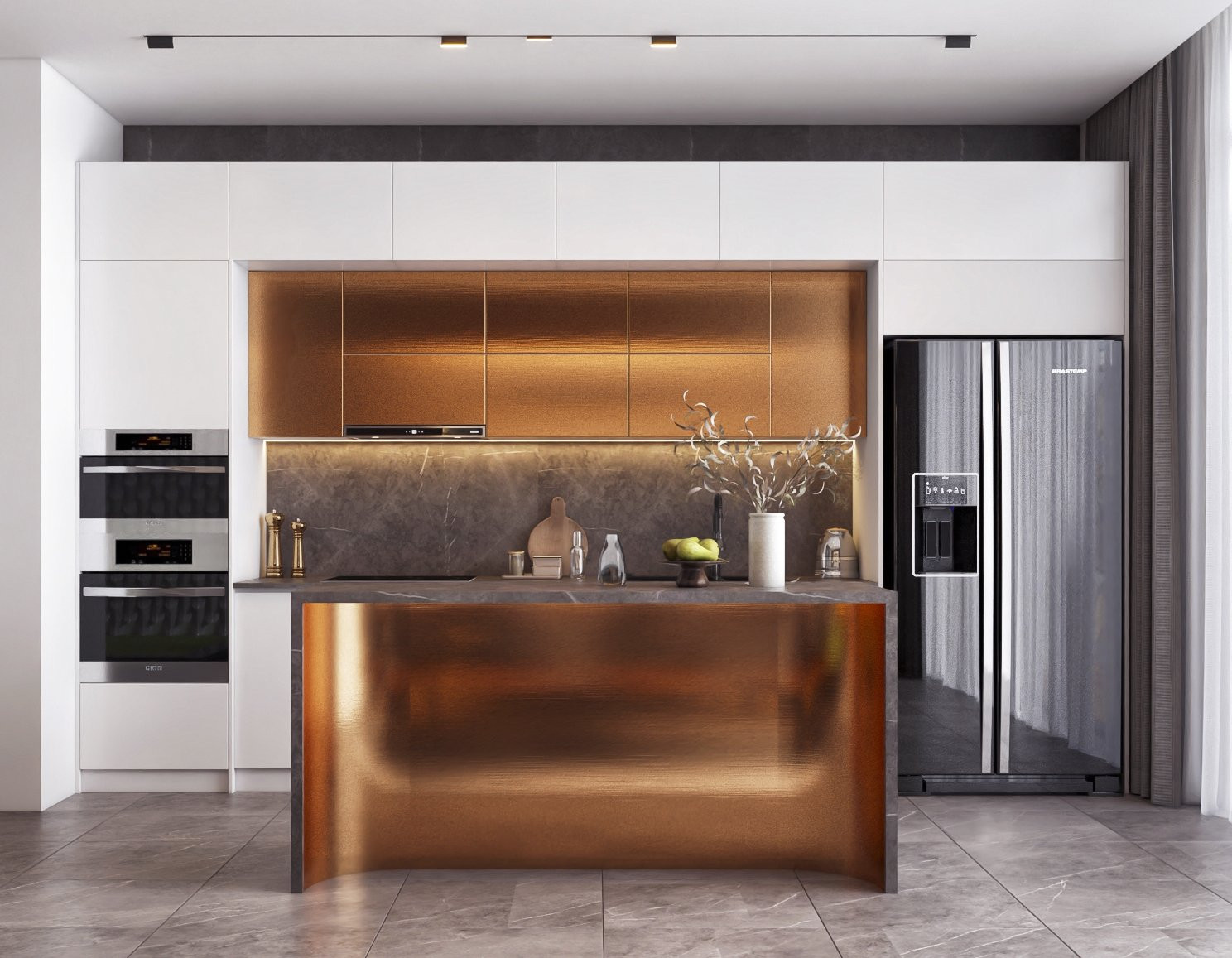 Phòng bếp kiểu châu Âu sang trọng, ấm cúng.