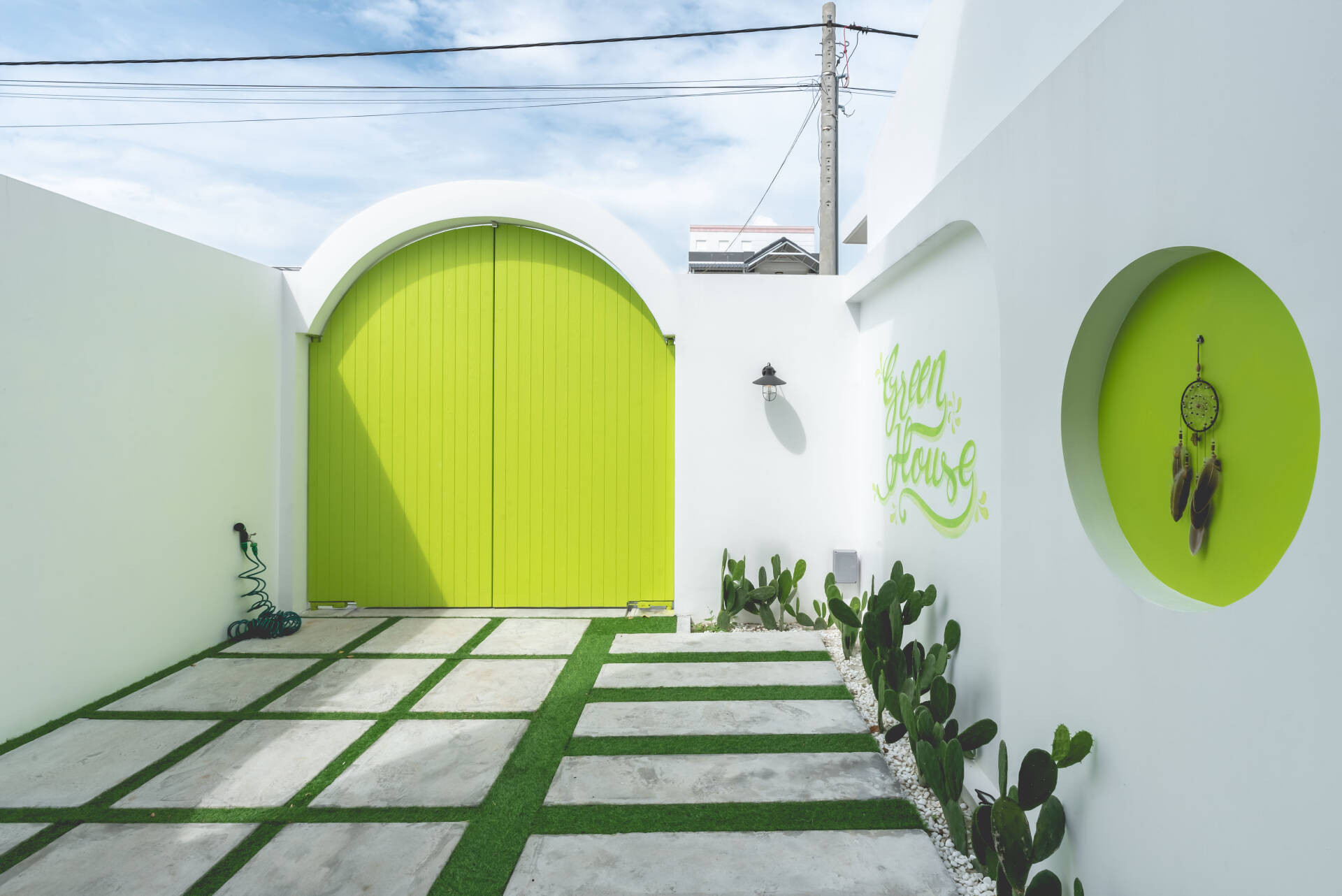 Green House - ngôi nhà màu xanh xây dựng dựa trên sở thích, cá tính của gia chủ. Công trình nằm trong khu quy hoạch dân cư của thành phố, kích thước chuẩn 5x20, 3 mặt giáp với các khu nhà lân cận, mặt chính nhìn ra đường.
