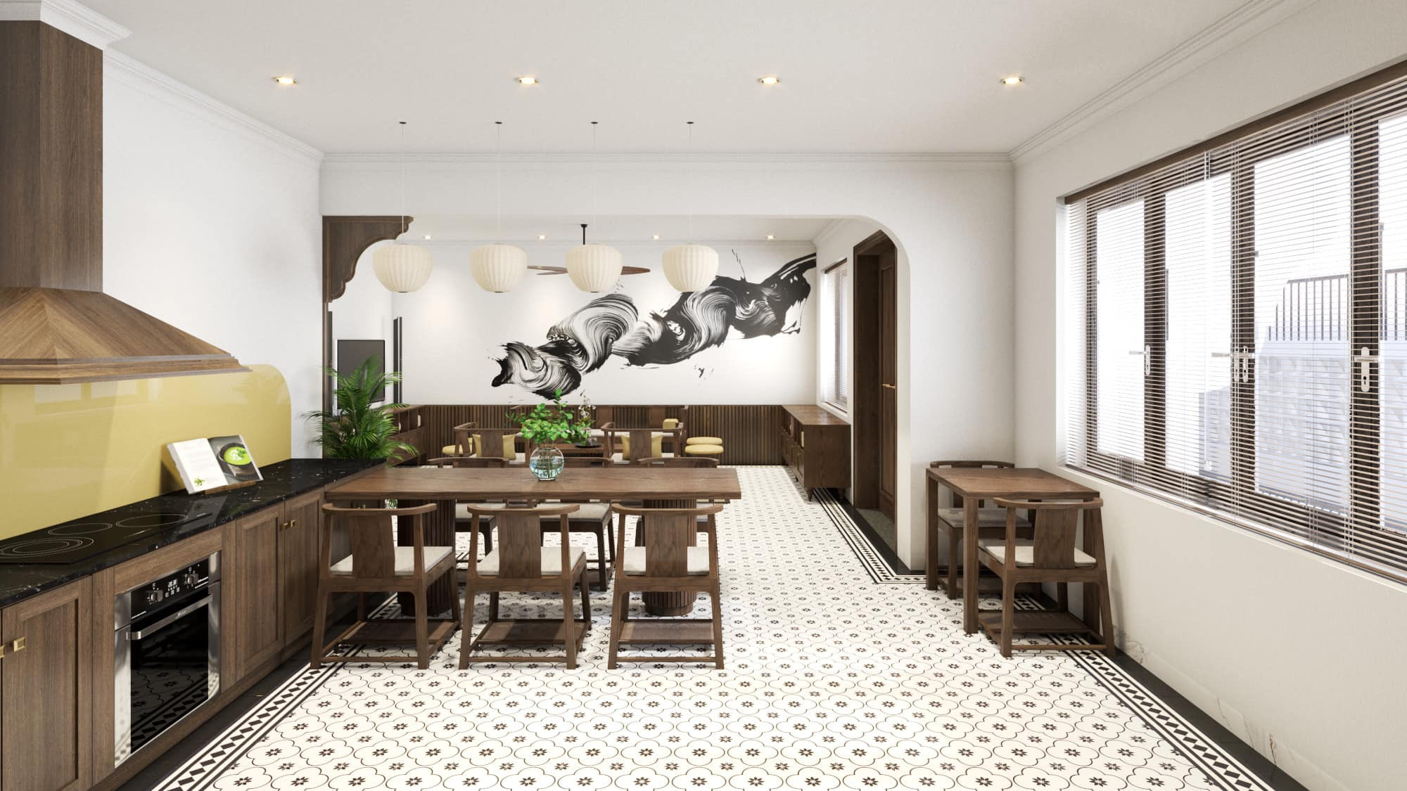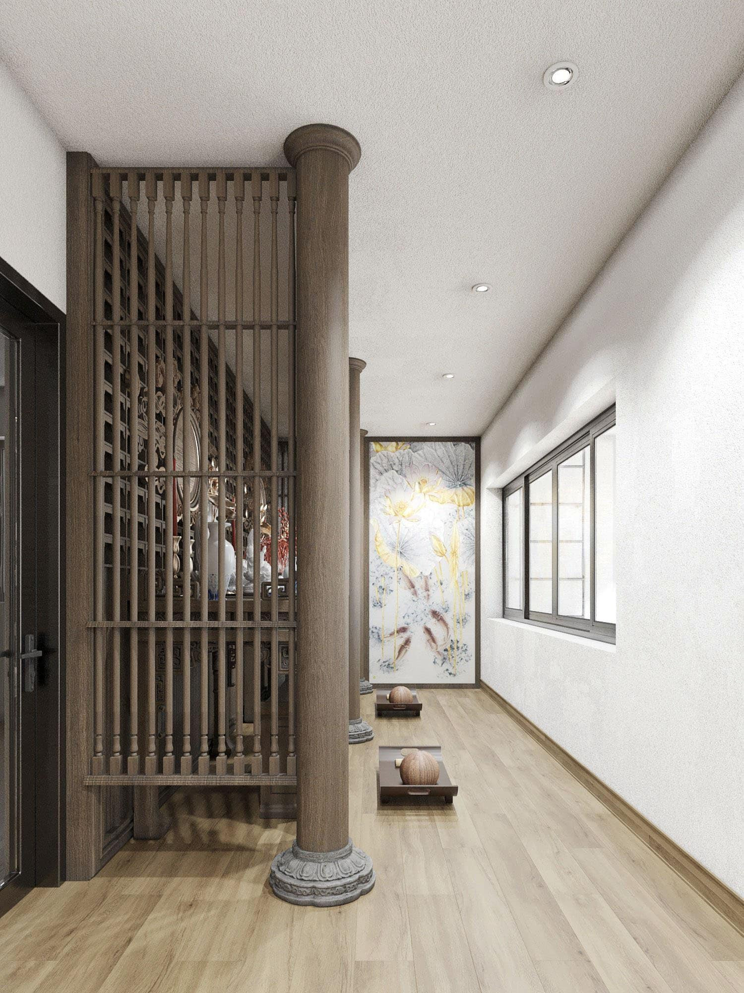 Chủ nhà là một người làm trong lĩnh vực văn hoá nên đề bài ra ban đầu là pha trộn các yếu tố truyền thống vào nội thất nhưng không được rườm rà.