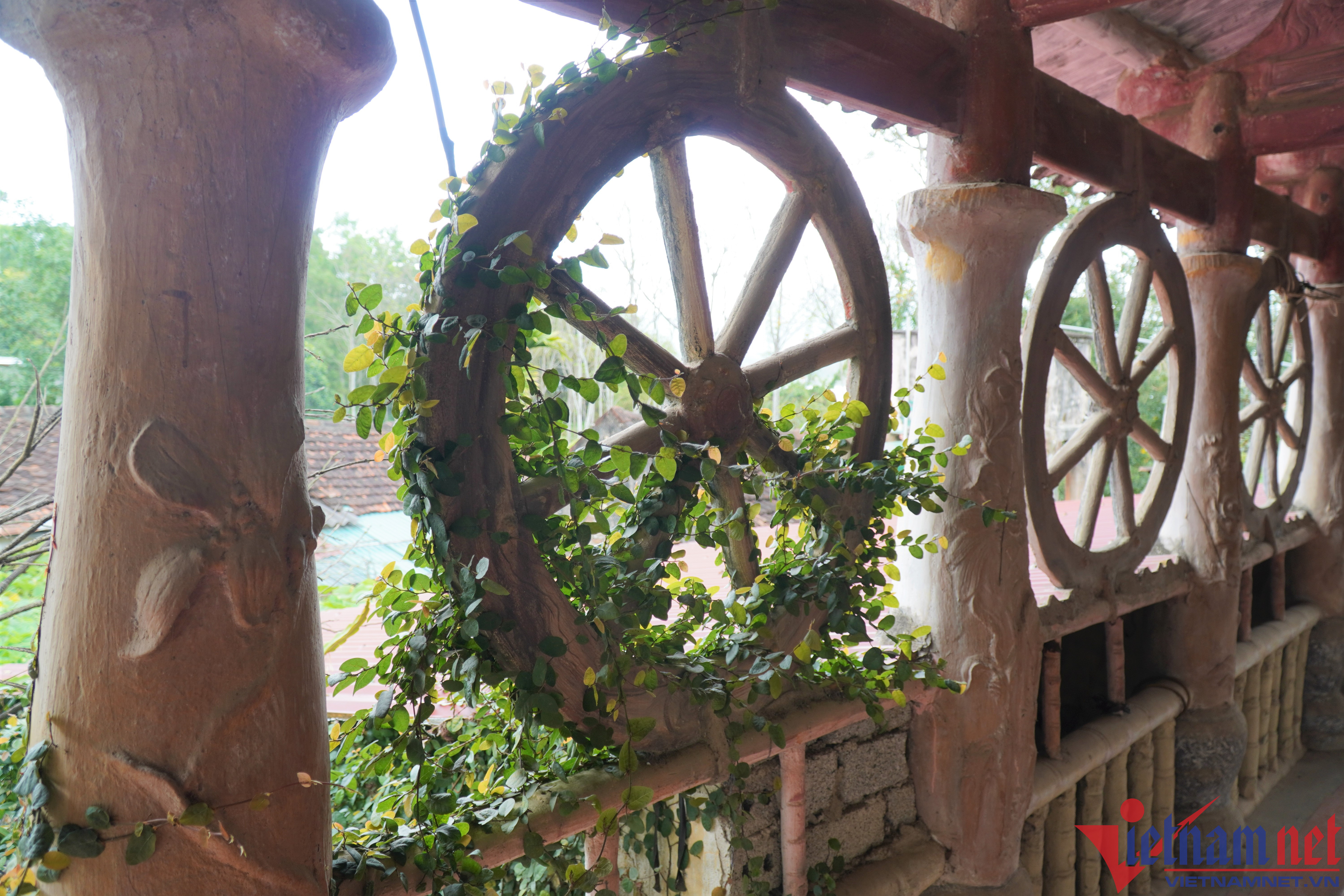 “Vợ biết tôi xây nhà theo ý tưởng riêng, bà ấy cũng ủng hộ. Còn hàng xóm không biết tôi đang xây dựng cái gì. Người thì đồn xây chùa, người nói xây miếu… Mỗi năm, mỗi tháng tôi hoàn thành một tý. Đến khi mọi thứ hoàn tất, dân làng mới biết đó là cái nhà ở”, ông Giang chia sẻ.