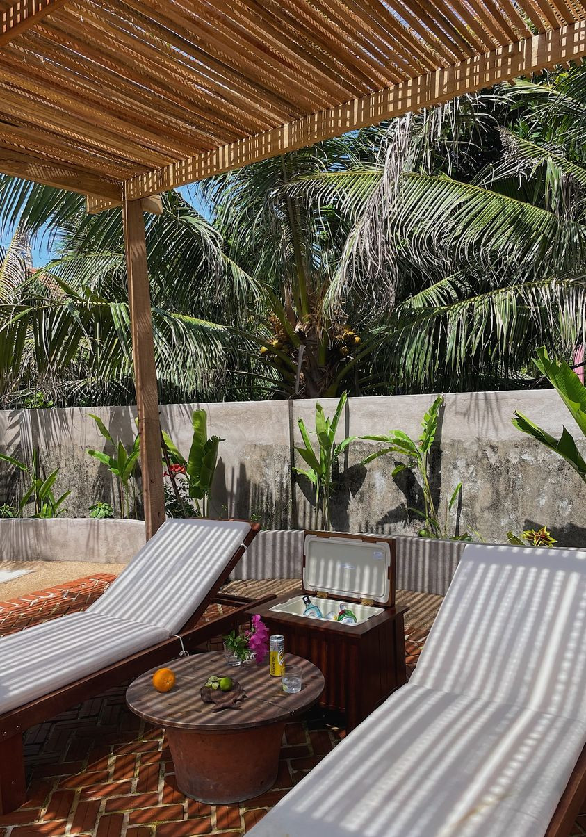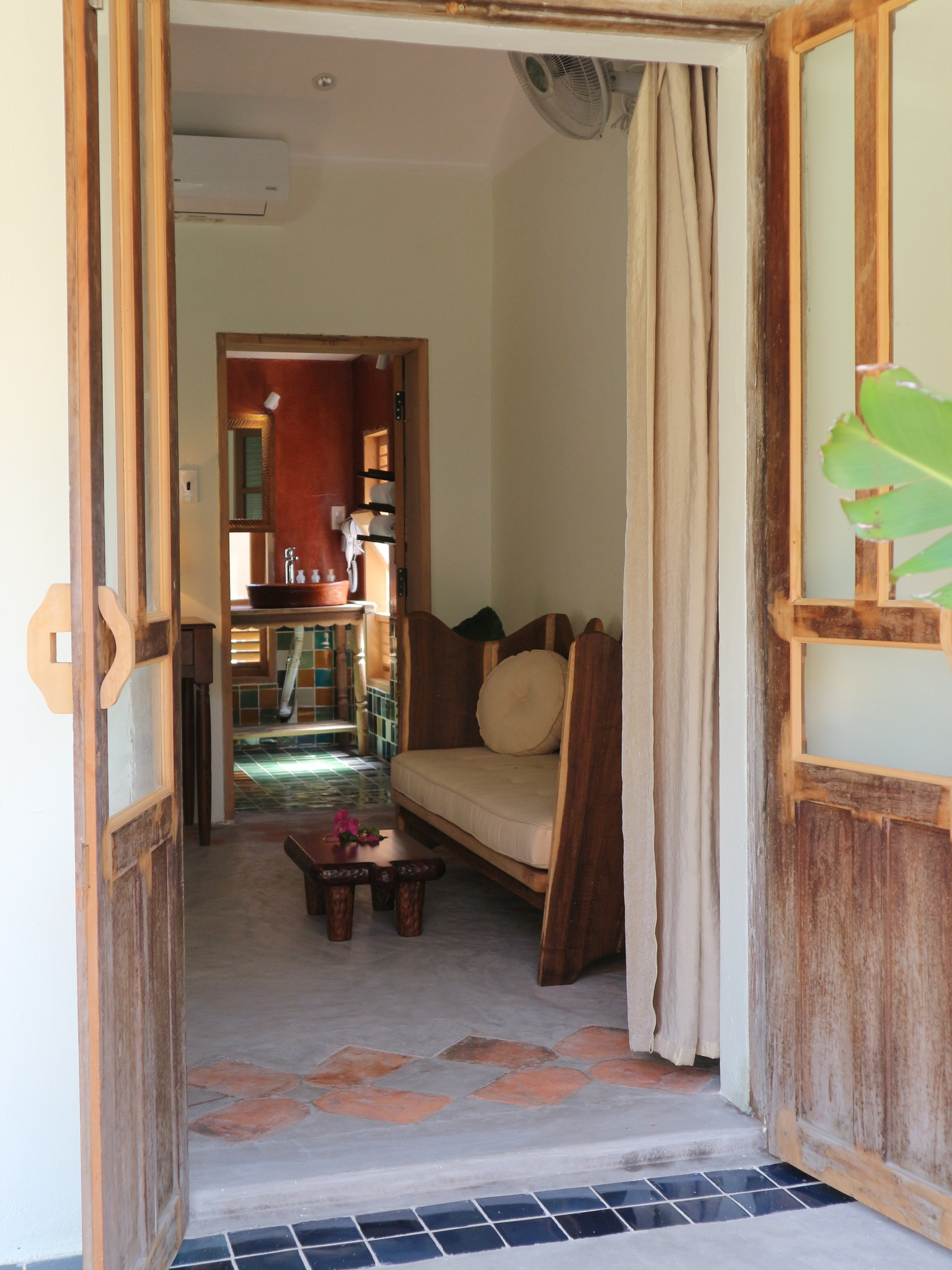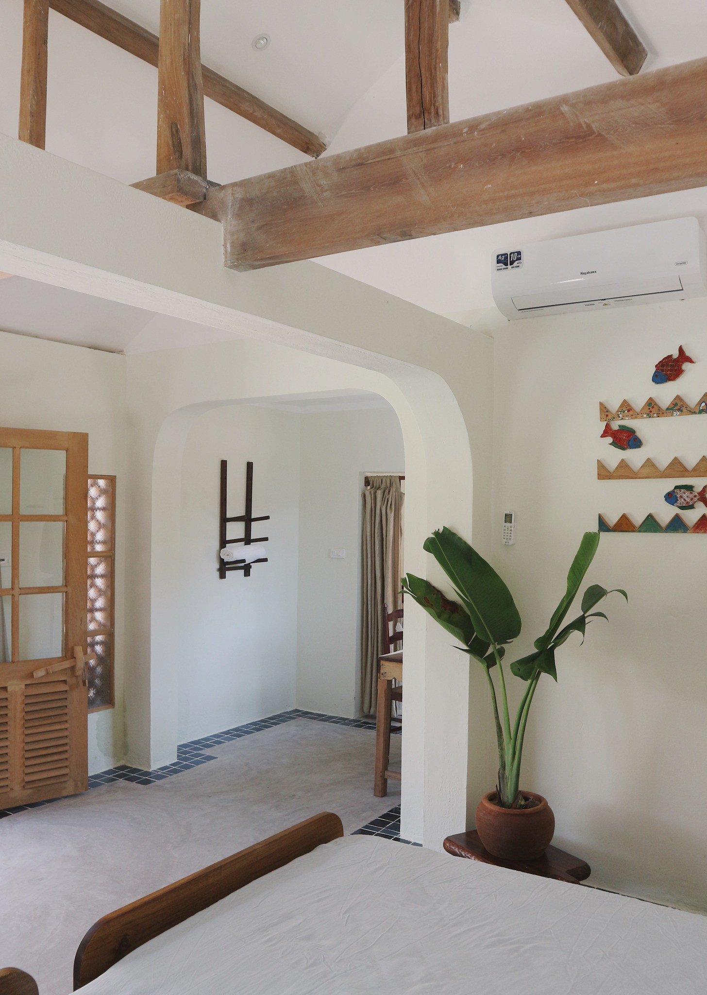 Những cánh cửa cũ được giữ lại, chỉnh sửa cho phù hợp thiết kế. Phòng nào cũng ngập nắng và gió mát từ biển.