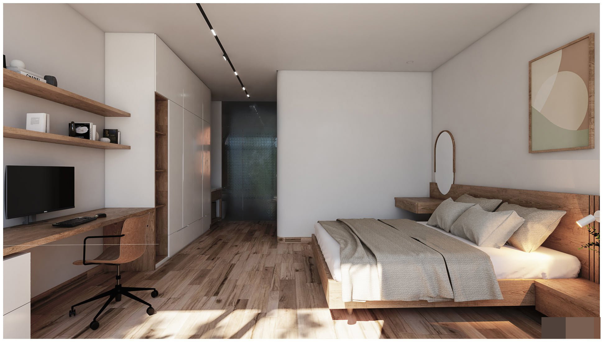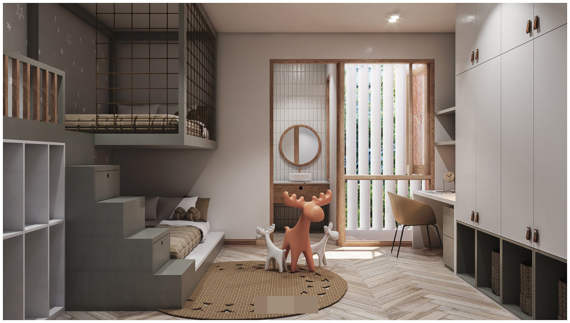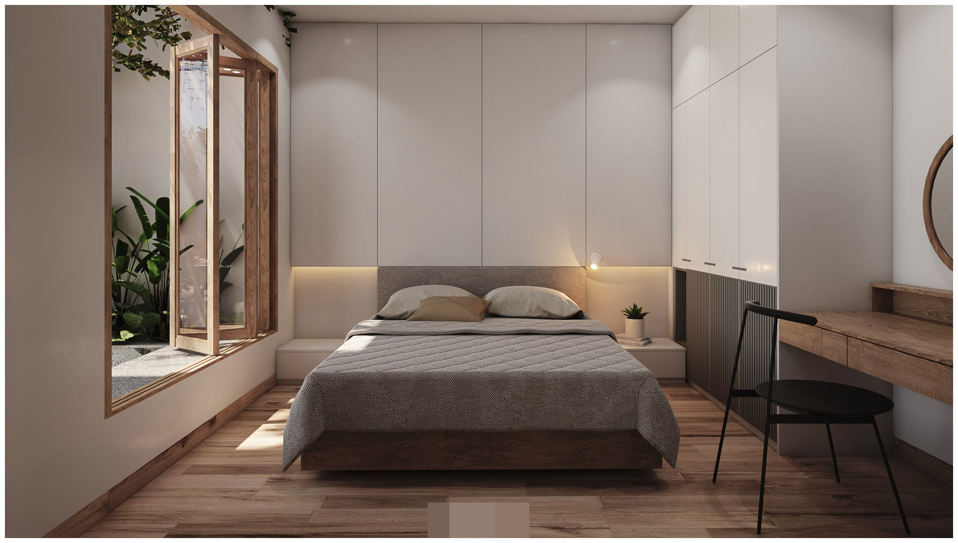 Các phòng ngủ đẹp mê ly, trong đó phòng ngủ tầng 1 dành cho người lớn tuổi có cửa rộng, mở ra sân vườn thoáng mát, rất tốt cho sức khỏe.