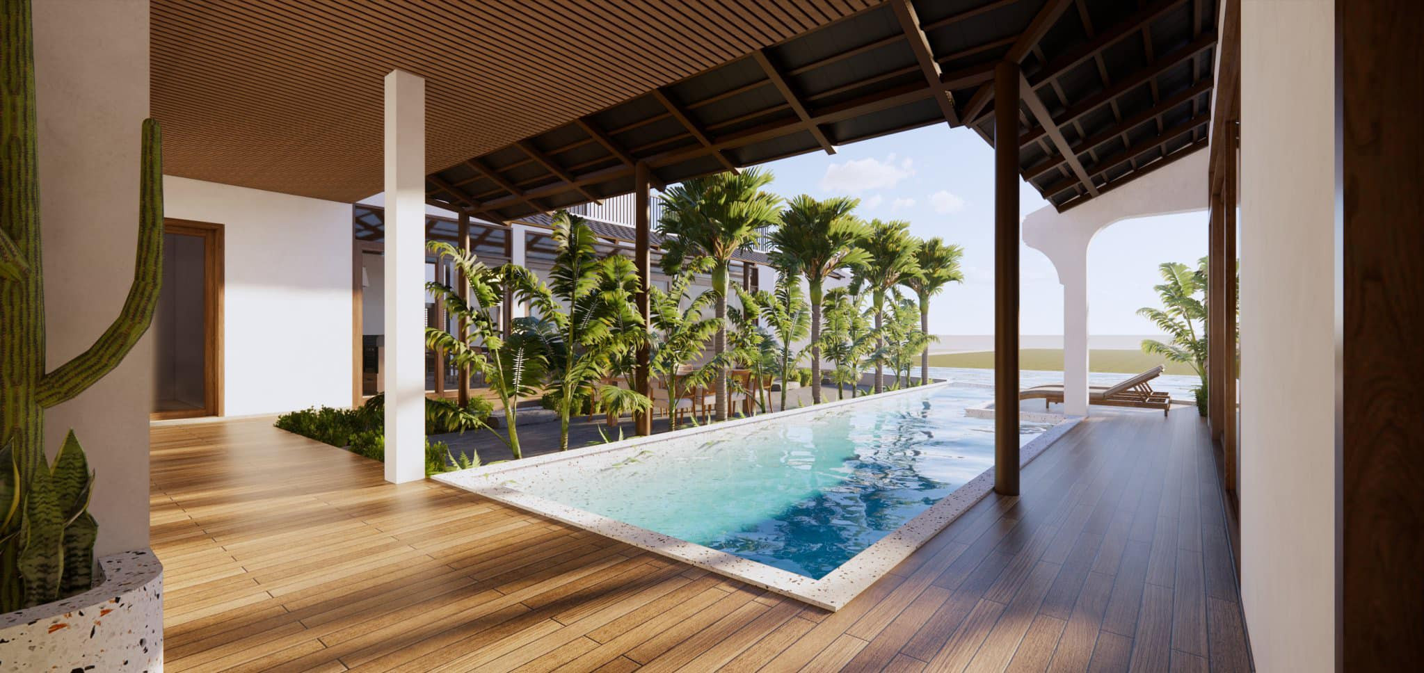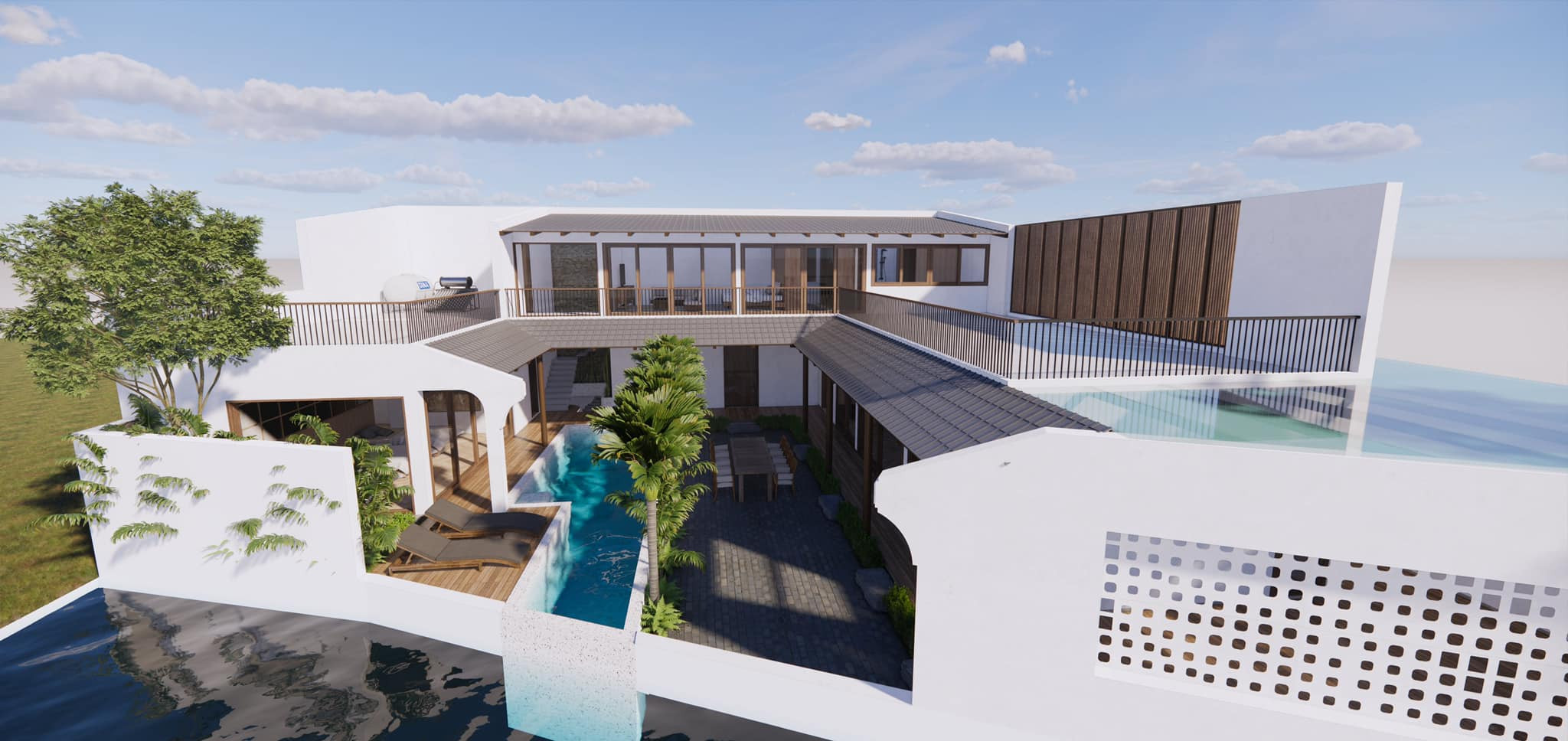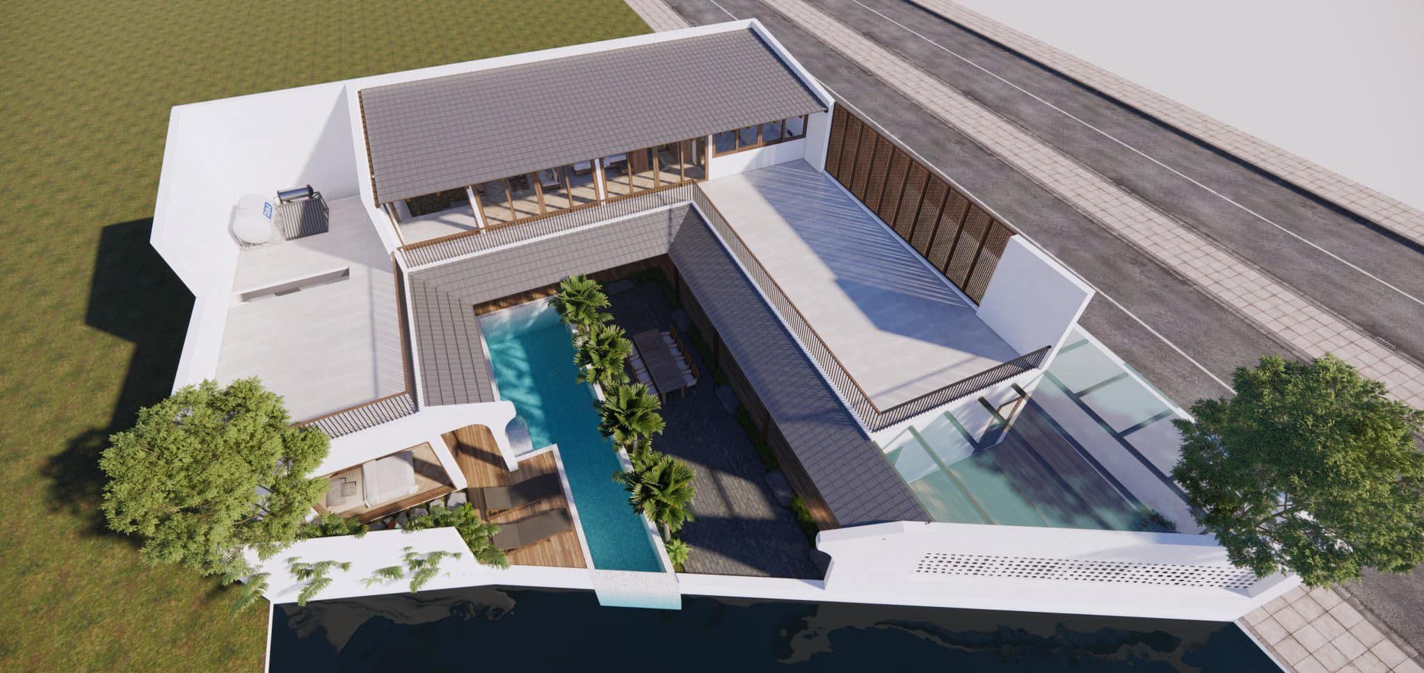 Ngôi nhà được sử dụng như một nơi chốn đi về của riêng gia đình, có phòng ngủ chung cho các con. Phòng master được thiết kế với các chức năng đầy đủ như một căn hộ với phòng tiếp khách riêng, phòng ngủ, thay đồ, xông hơi, massage và có view nhìn bao quát ra toàn bộ nhà. Mái hiên bao quanh, sân giữa được chia làm hai chức năng, sân BBQ và hồ bơi trẻ em, tạo ra không gian cảnh quan đối nội cho toàn bộ view từ các phòng.