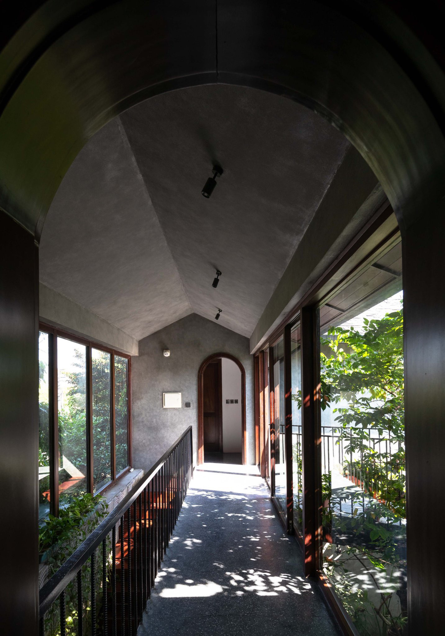 Sự đan xen giữa kiến trúc cổ và hiện đại tạo nên không gian sống nghỉ dưỡng tuyệt vời, vừa có cây xanh, vừa có tiện nghi. Mảng tường kính lớn giúp cản bụi cho nhà nhưng cũng ngập tràn ánh sáng.