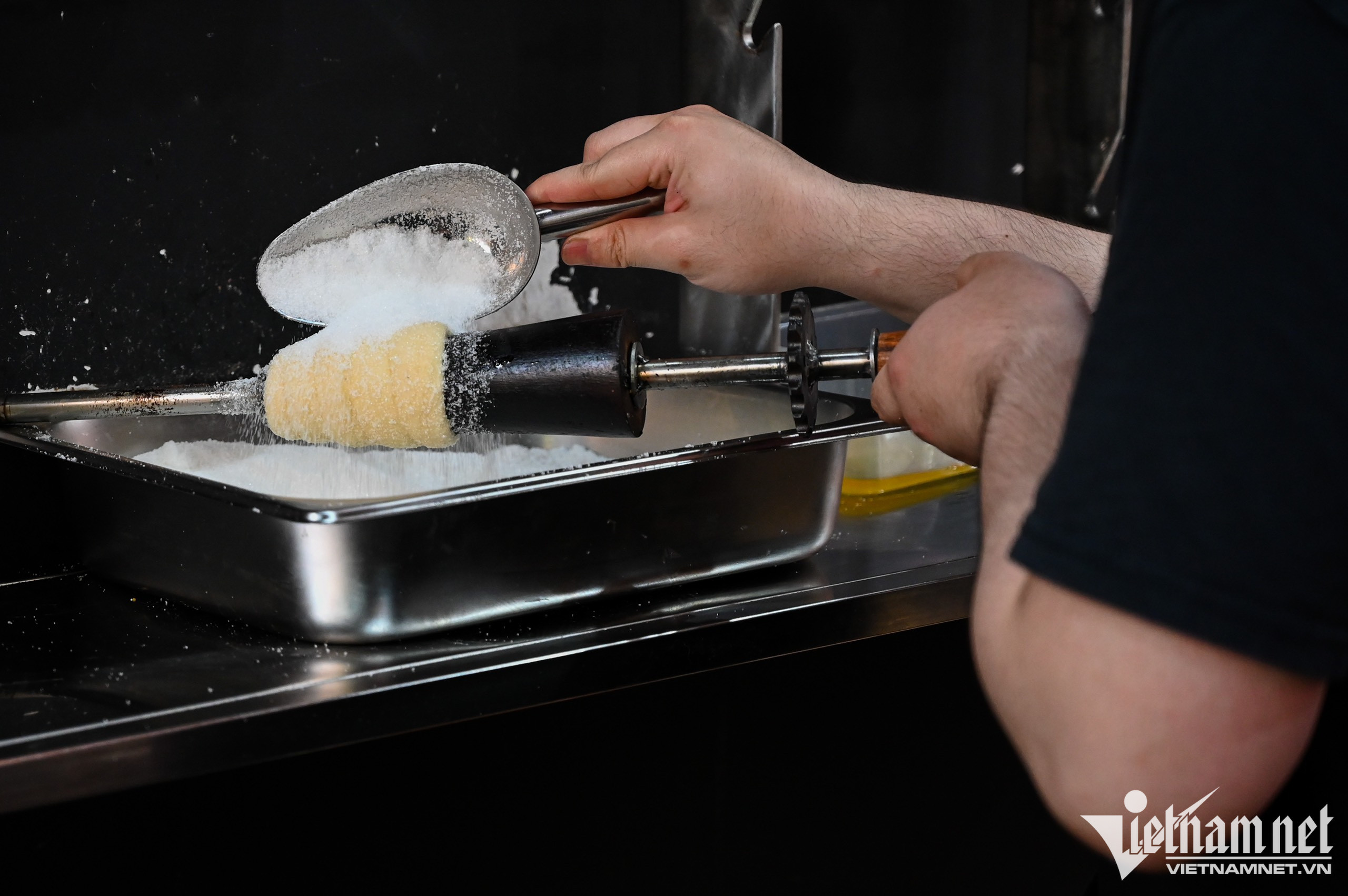 Với nguyên liệu chính là bột chimney nhập khẩu từ châu Âu, sau khi nhào cho thật dẻo chúng được quấn quanh trục quay để tạo hình rồi lăn trong đường để lớp vỏ có vị ngọt.