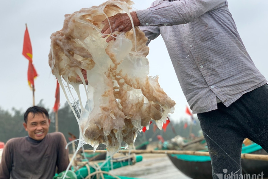 Ngư dân ở xã Thạch Văn đổ xô ra biển bắt sứa cuối mùa. Ra biển lúc 12h đêm, họ giăng lưới đánh bắt được nhiều tấn sứa, thu về tiền triệu mỗi ngày.