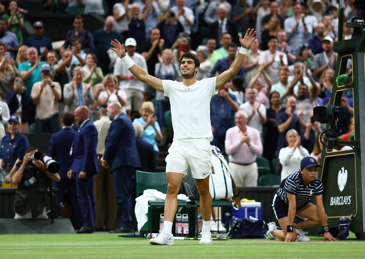 Để thua 3-6 ở set 1, Carlos Alcaraz ngược dòng đánh bại Matteo Berrettini 3 set sau đó với cùng tỉ số 6-3 để ghi tên mình vào vòng tứ kết Wimbledon 2023.