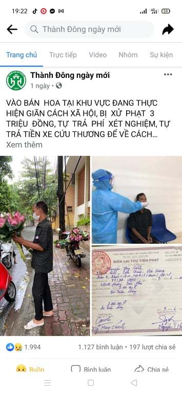 Một nông dân ở huyện Cẩm Giàng mang 8 bó sen lên TP Hải Dương bán. Ông bị phạt 3 triệu đồng, buộc cách ly 21 ngày.