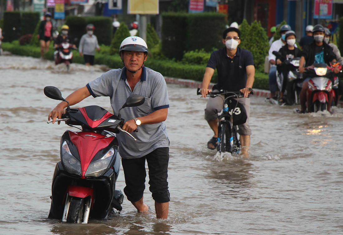 Theo ghi nhận toàn đường Mậu Thân chìm trong biển nước, nhiều người phải lội bì bõm suốt một đường dài để đi làm. Trong đó, hàng loạt xe chết máy phải dắt bộ do nước vào ống bô.
