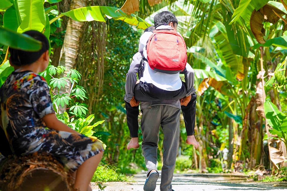 12 năm qua, Tân lớn lên, đến trường trên tấm lưng nhọc nhằn của cha.