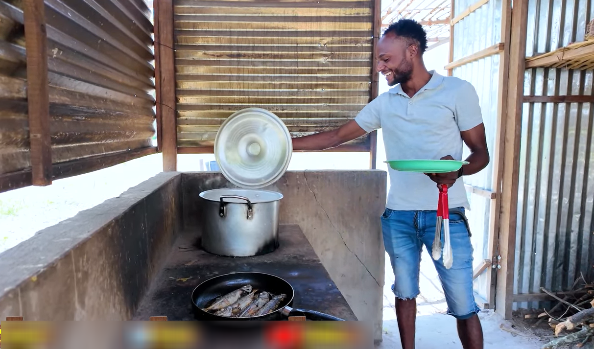 Banxoa – thành viên người Angola thuộc nhóm châu Phi của Quang Linh Vlogs đảm nhiệm việc đứng bếp, trực tiếp nấu nướng.