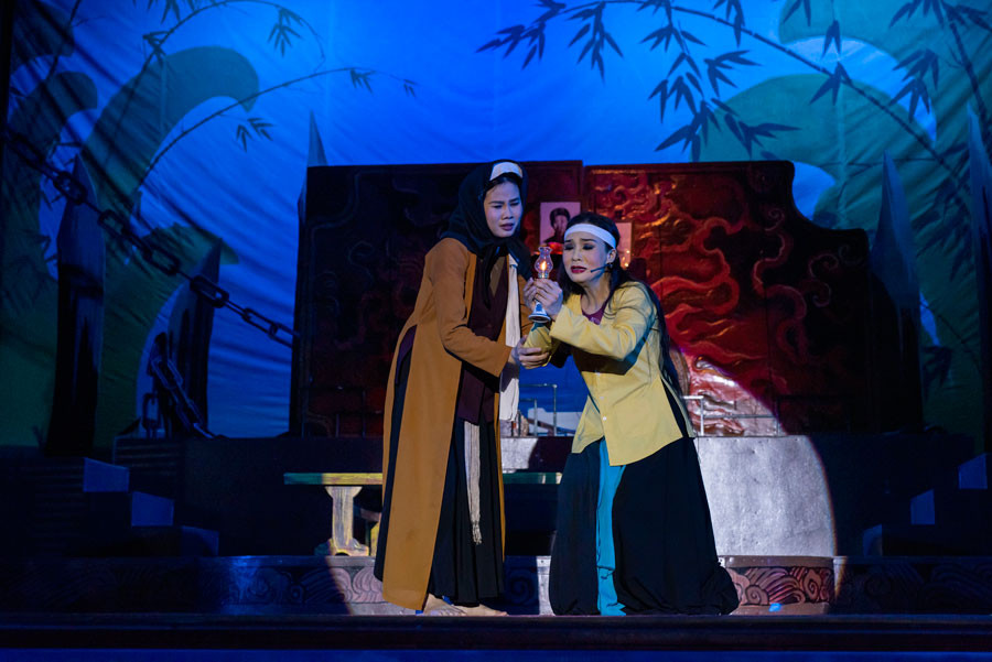 Tác giả cũng đầy dụng công khi đưa vào kịch bản những chi tiết thể hiện tình yêu son sắt, thủy chung giữa Nguyễn Văn Cẩm và cô Trai, từ đó làm tăng vẻ đẹp trữ tình, lãng mạn và gần gụi cho nhân vật. Đặc biệt, sự xuất hiện đầy sáng tạo của dàn đế ở một góc sân khấu với cách dẫn chuyện cùng những màn giao đãi thú vị với các nhân vật cũng mang đến nhiều hứng thúc cho người xem.