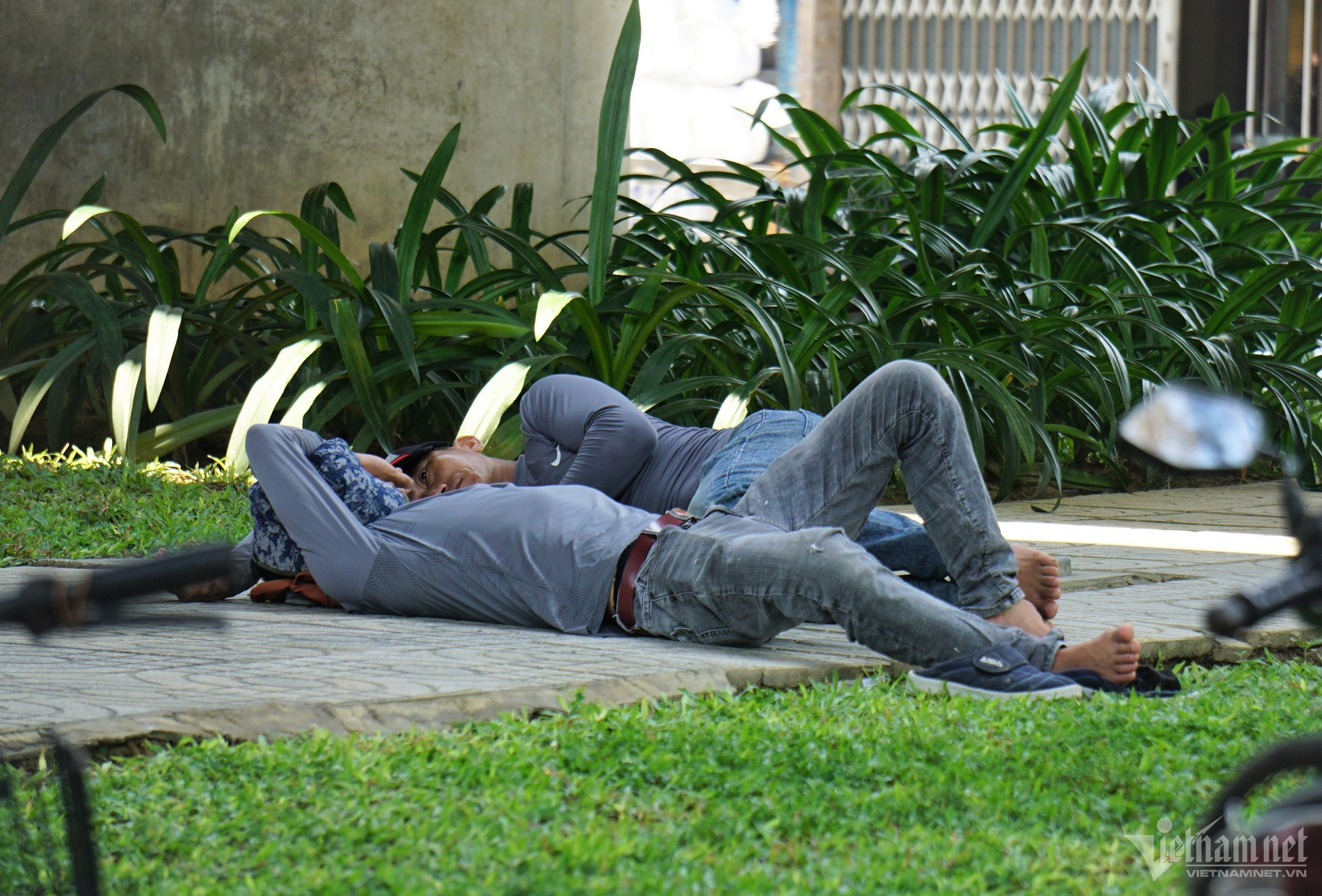Để chống chọi với nắng nóng gay gắt, người dân khi đi ra ngoài đường đã dùng mọi biện pháp như che ô, mặc áo chống nắng, đeo kính râm... Vào buổi trưa, rất đông người dân tìm đến công viên, gầm cầu trốn nắng.