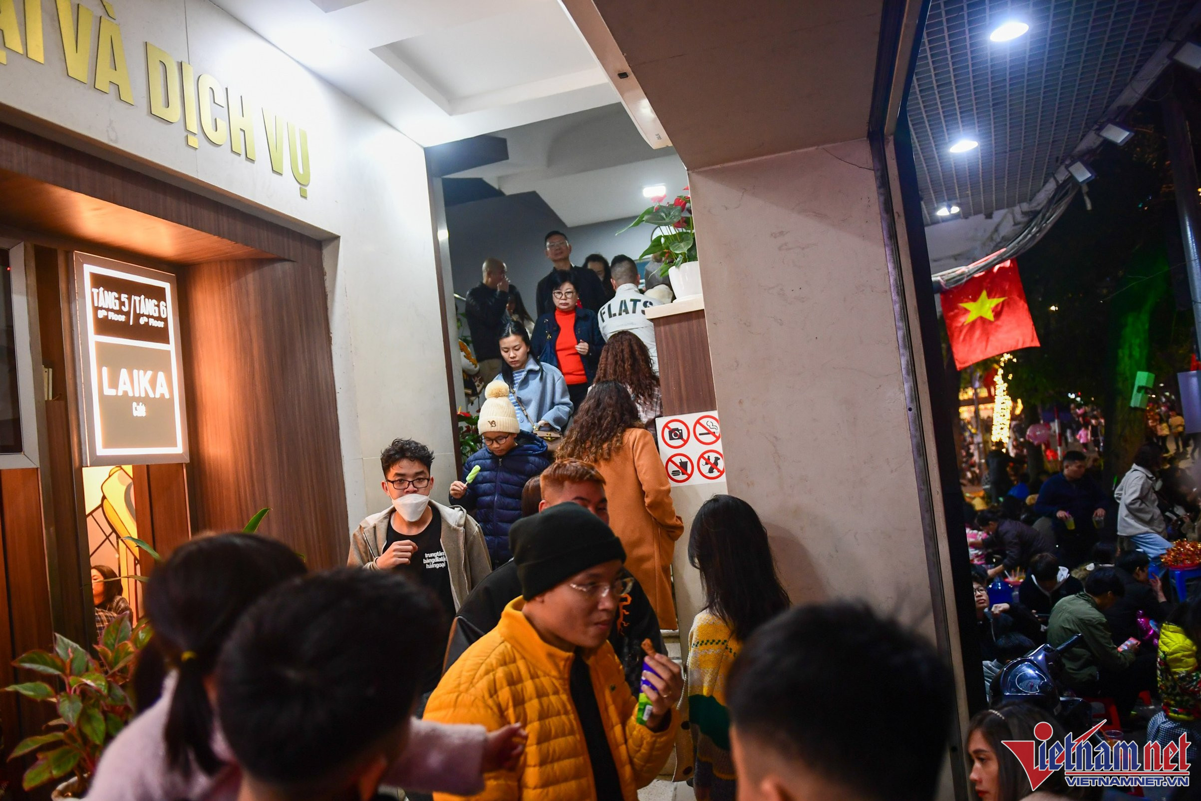 Cả trăm nghìn người dân đã đổ về những tuyến đường quanh khu vực hồ Hoàn Kiếm chờ chiêm ngưỡng màn pháo hoa tầm cao. Tuyến đường Đinh Tiên Hoàng chật cứng phương tiện.