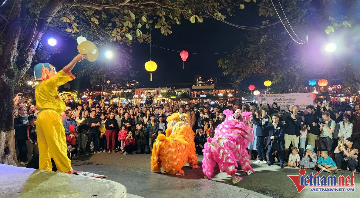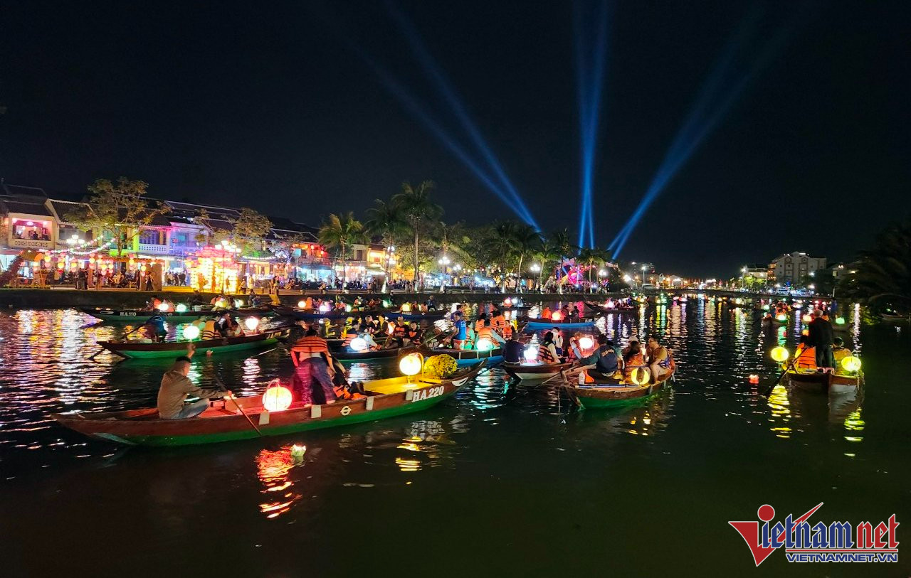 20h30, tại TP Hội An (tỉnh Quảng Nam), trời se lạnh, các tuyến phố chính như Trần Phú, Nguyễn Thái Học, cầu An Hội tập trung hàng ngàn người dân dạo phố.