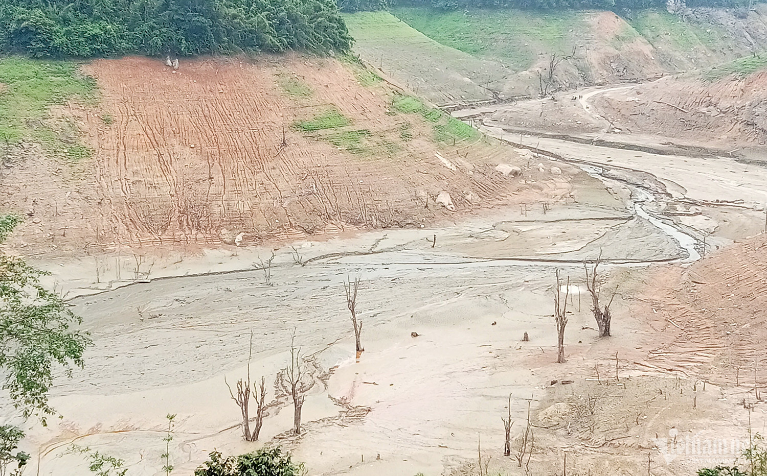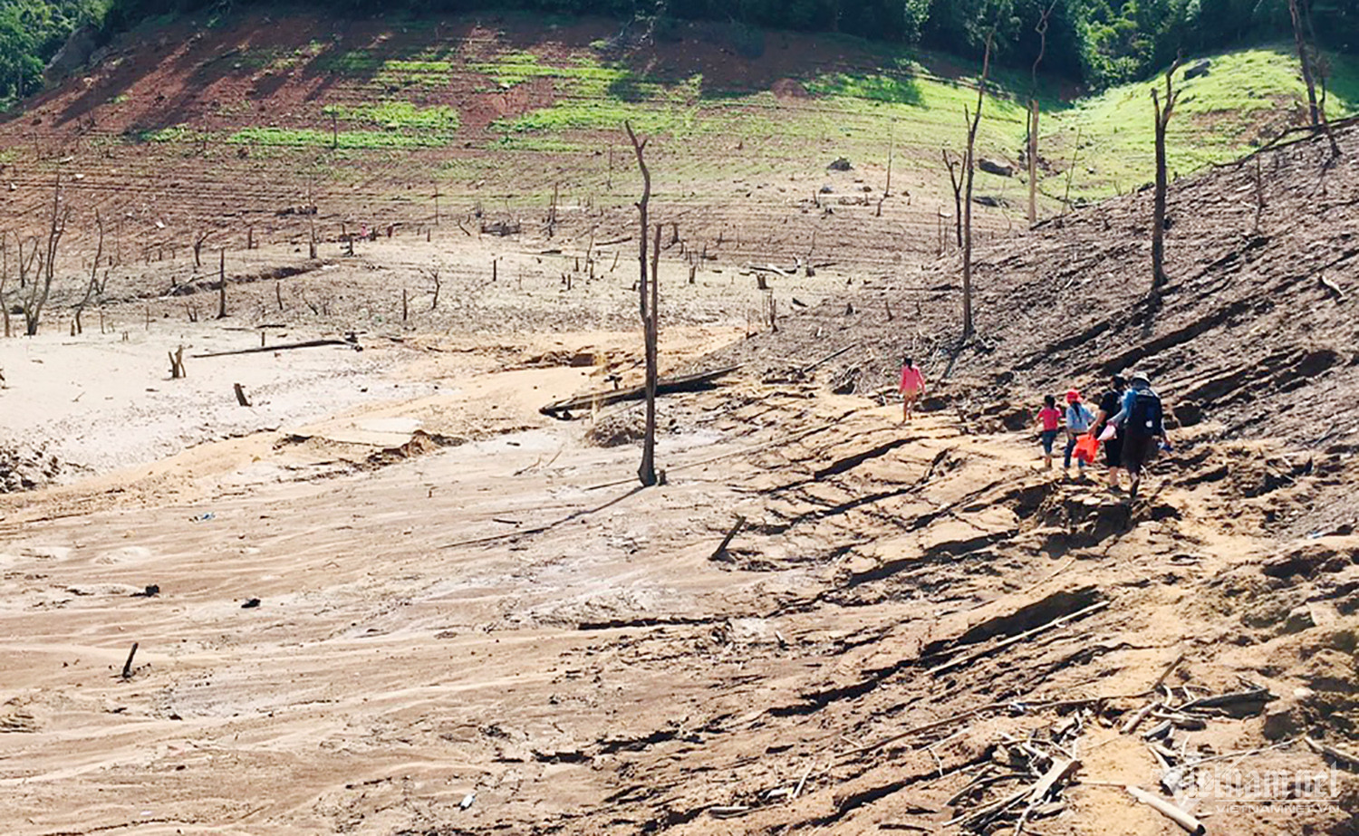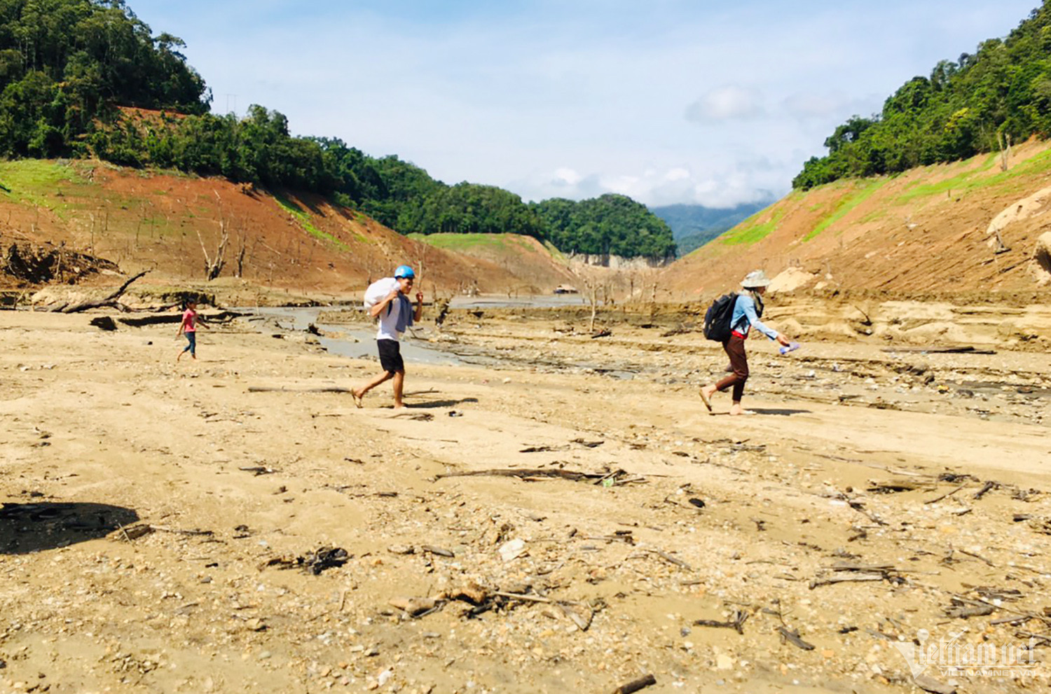 Người dân lội bùn giữa lòng hồ
