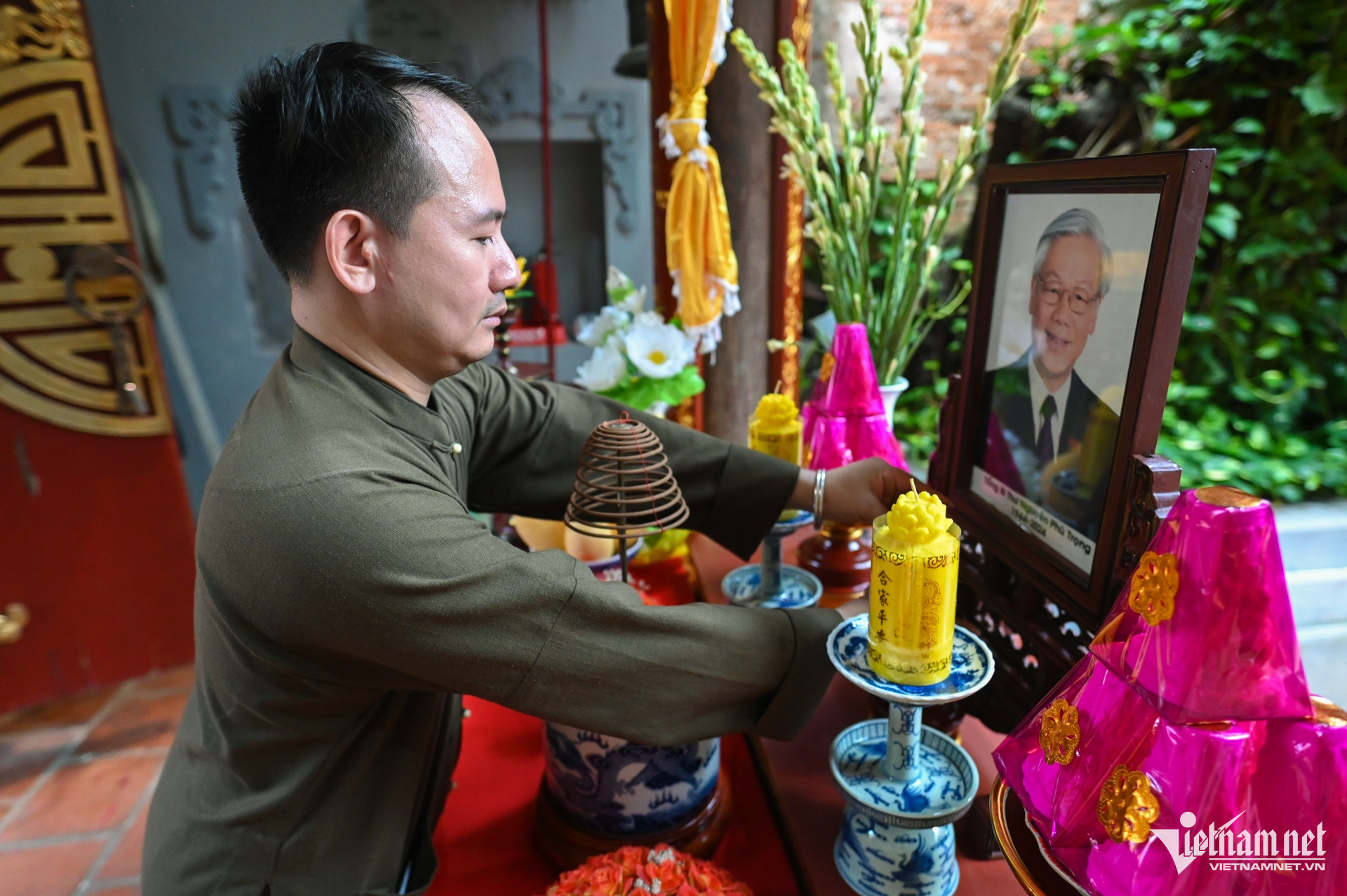 Sau khi lập ban thờ, nhiều người dân qua đây đã vào thắp hương tưởng nhớ Tổng Bí thư Nguyễn Phú Trọng.