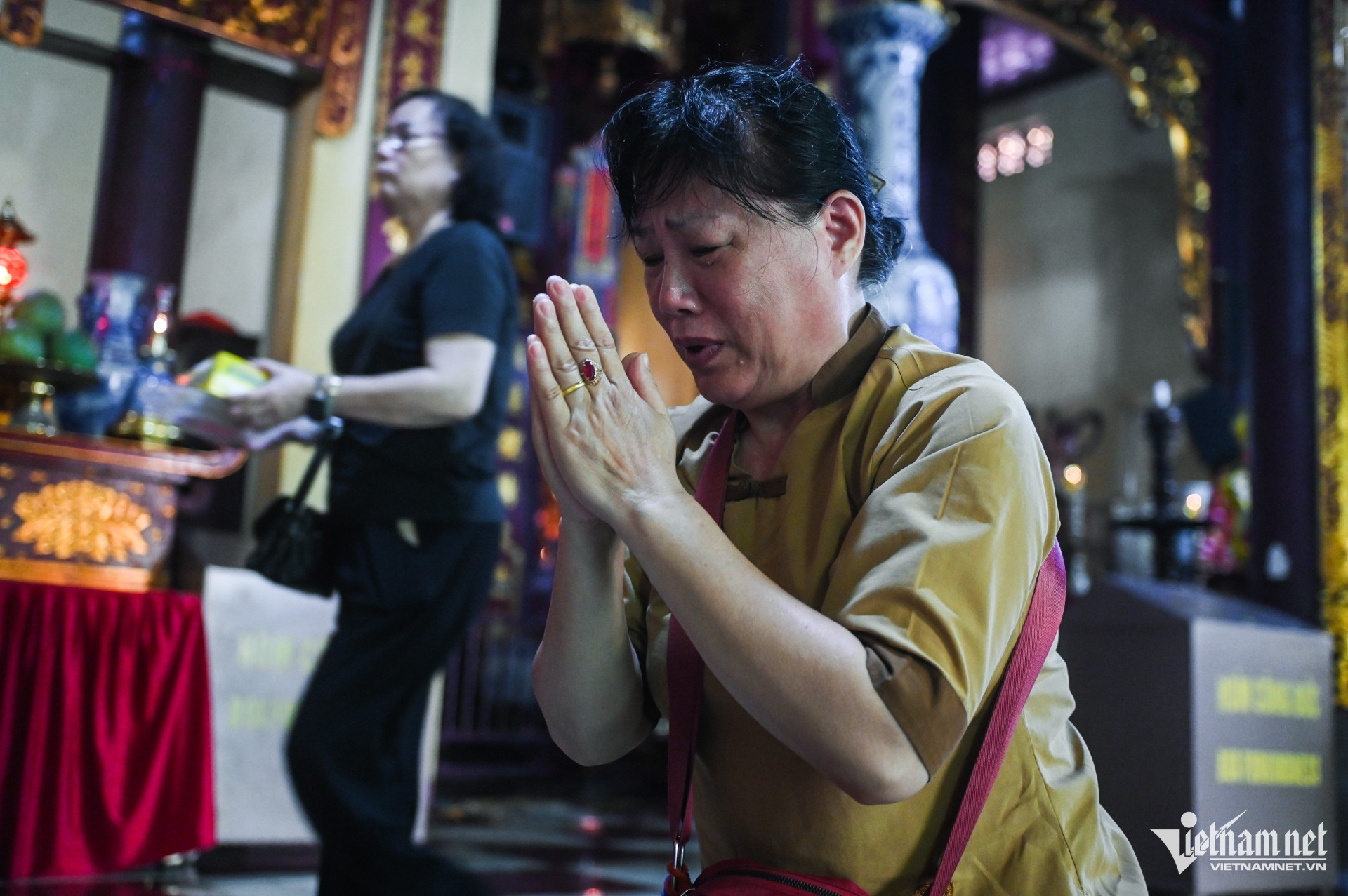 Bé Thiên cùng mẹ đến chùa Quán Sứ để bày tỏ lòng kính trọng và thương tiếc sự ra đi của Tổng Bí thư.