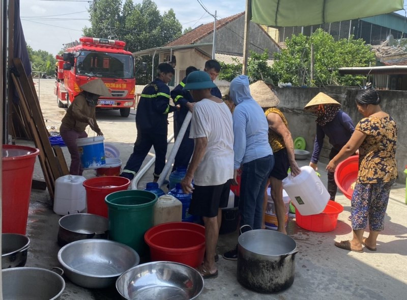 Được biết, trong ngày 9/9, Phòng Cảnh sát PCCC&CNCH Công an tỉnh Hà Tĩnh đã điều động hàng chục lượt xe, 25 lượt cán bộ chiến sĩ Đội PCCC&CNCH thị xã Hồng Lĩnh phối hợp với chính quyền địa phương tiếp nước cho các thôn, xóm, tổ dân phố trên địa bàn phường Đức Thuận, phường Bắc Hồng, xã Thuận Lộc.