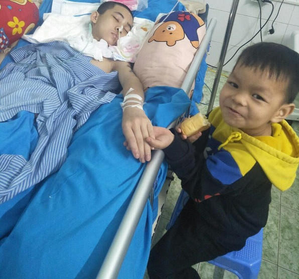 "Thời gian đầu Long điều trị ở bệnh viện tư, mỗi ngày cũng hết 5-10 triệu, tuỳ theo diễn biến và phác đồ thay đổi. Tôi vừa làm thủ tục chuyển cháu lên bệnh viện tỉnh để hưởng bảo hiểm. Bác sĩ nói chấn thương của cháu rất nặng, cần phải điều trị lâu dài và tốn kém. Nợ cũ còn chưa trả hết... ", anh nghẹn lời. Nước mắt lăn xuống gò má đen sạm của người cha khốn khổ.