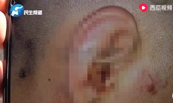 Tang đưa ra bức ảnh về tổn thương ở tai sau khi AirPods phát nổ. Ảnh: Weibo. |