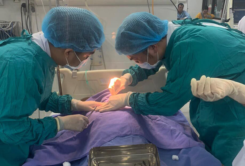 Tại bệnh viện, người đàn ông được mở khí quản qua cổ, hỗ trợ thở máy, dùng thuốc an thần, giãn cơ, trung hòa độc tố uốn ván. Dự kiến, bệnh nhân phải thở máy dài ngày, chăm sóc và phục hồi chức năng tích cực mới có thể bảo toàn tính mạng.