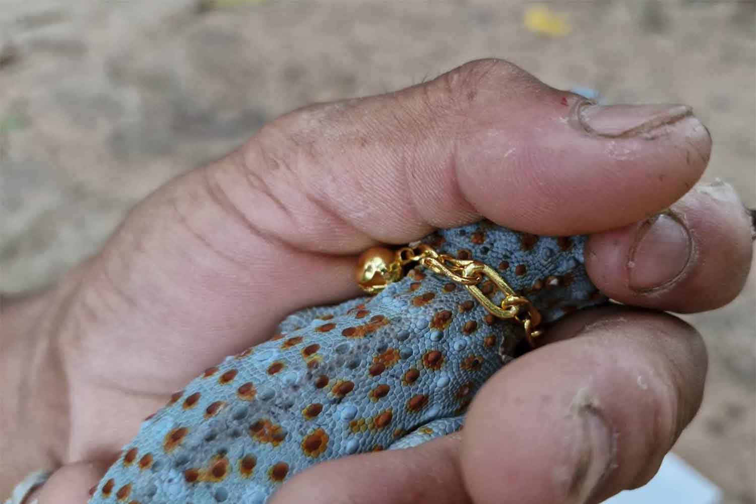 Tin rằng nhờ con tắc kè hai đuôi mà mình trúng số, anh Jane lập tức mua một chiếc vòng cổ nhỏ bằng vàng, khoảng 5.100 Baht, để làm quà cho "thú cưng may mắn".