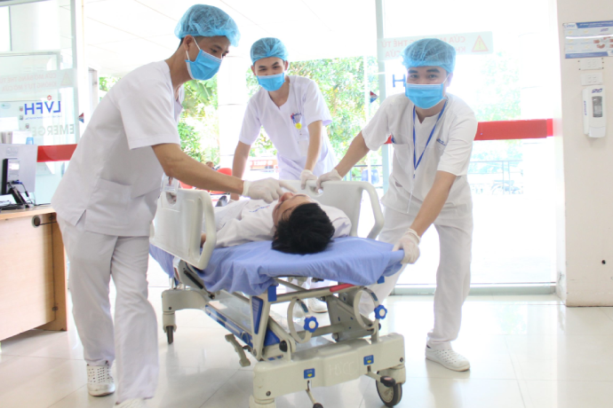 Từ 23h hôm trước, nam bệnh nhân có biểu hiện đau ngực tăng dần. Anh tới bệnh viện huyện cấp cứu, sau đó chuyển tiếp lên bệnh viện tỉnh.