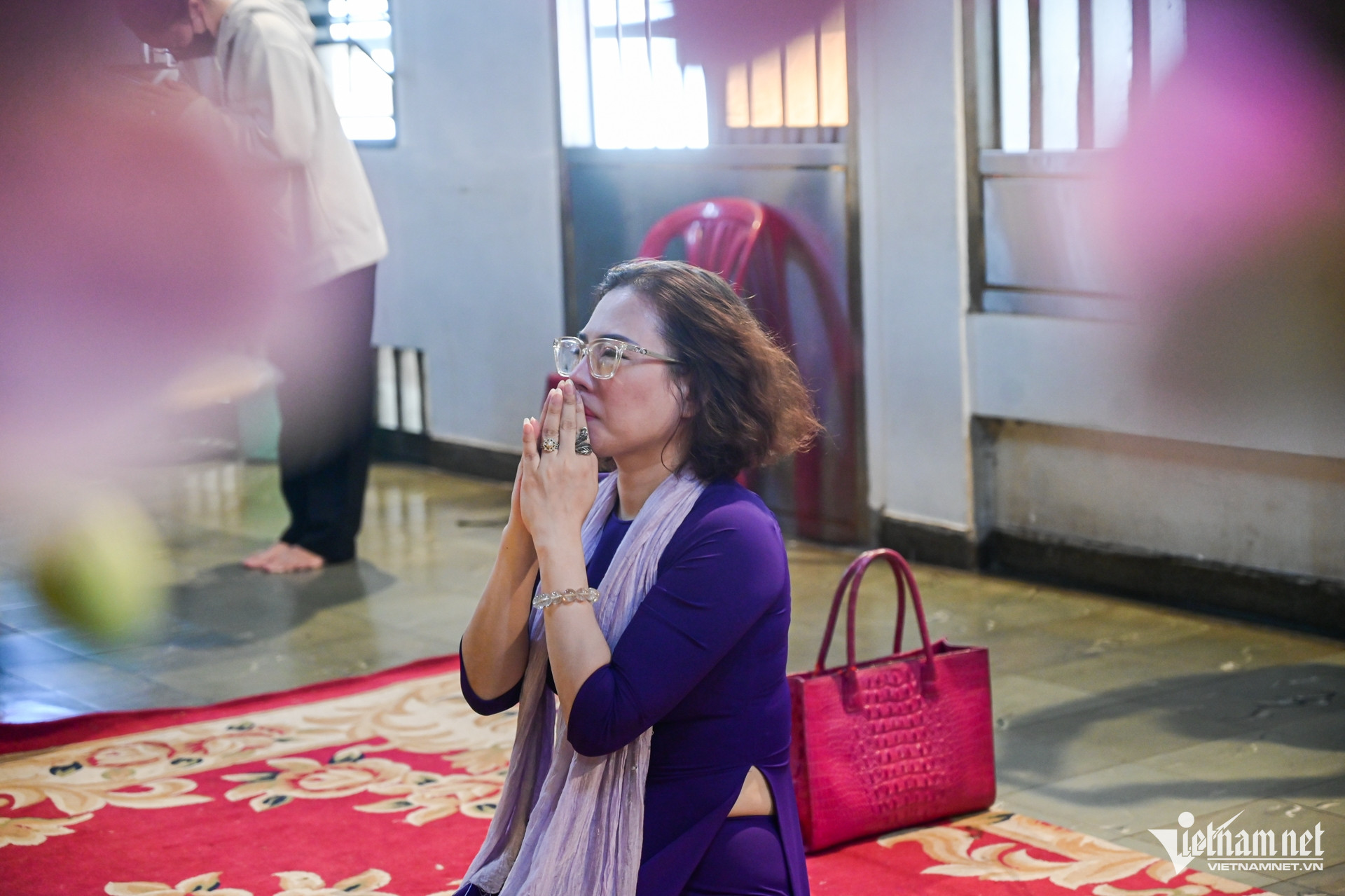 Sau khi thắp nhang, nhiều người dành phút mặc niệm trước di ảnh của Tổng Bí thư Nguyễn Phú Trọng. Không ít người lặng lẽ lau dòng nước mắt tiếc thương nhà lãnh đạo mẫu mực của Đảng.