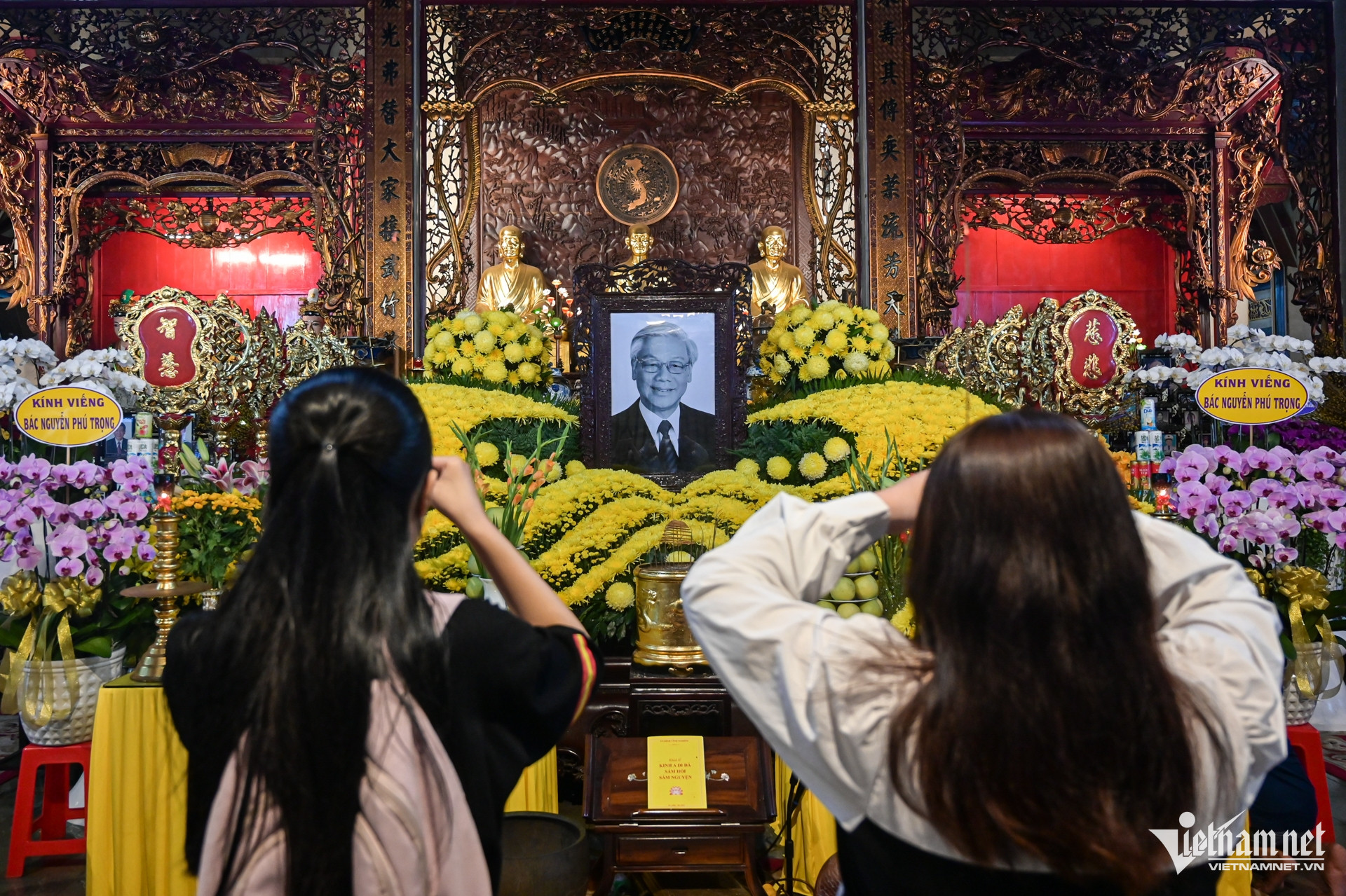 Di ảnh Tổng Bí thư Nguyễn Phú Trọng được đặt ở vị trí trang trọng trong khuôn viên chùa Vĩnh Nghiêm (quận 3).