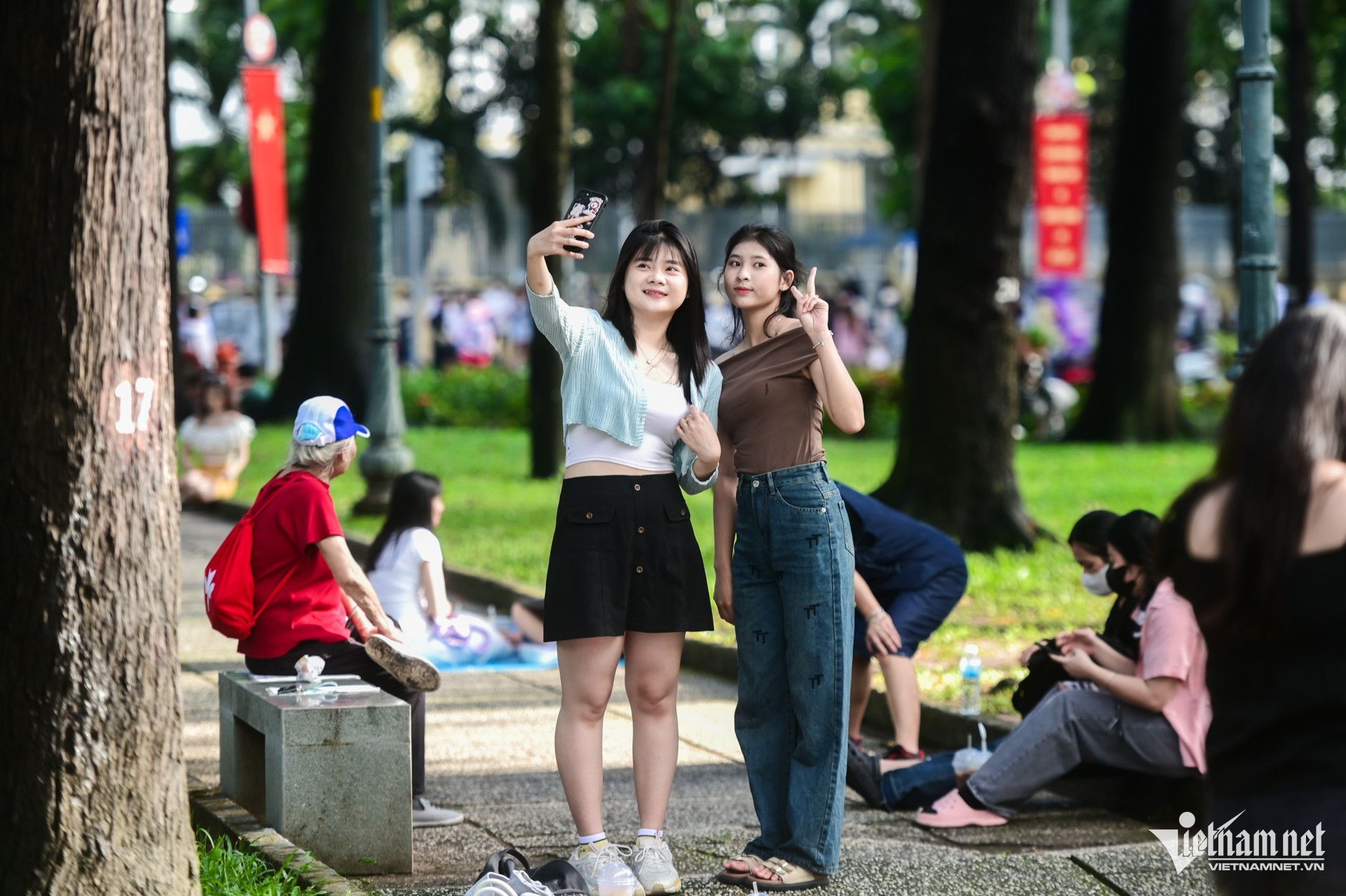 Sáng sớm TPHCM có nắng vàng, thời tiết 26 độ C mát mẻ thuận tiện cho nhiều hoạt động vui chơi ngoài trời. Khu công viên 30/4 đông kín bạn trẻ ngồi cà phê bệt.