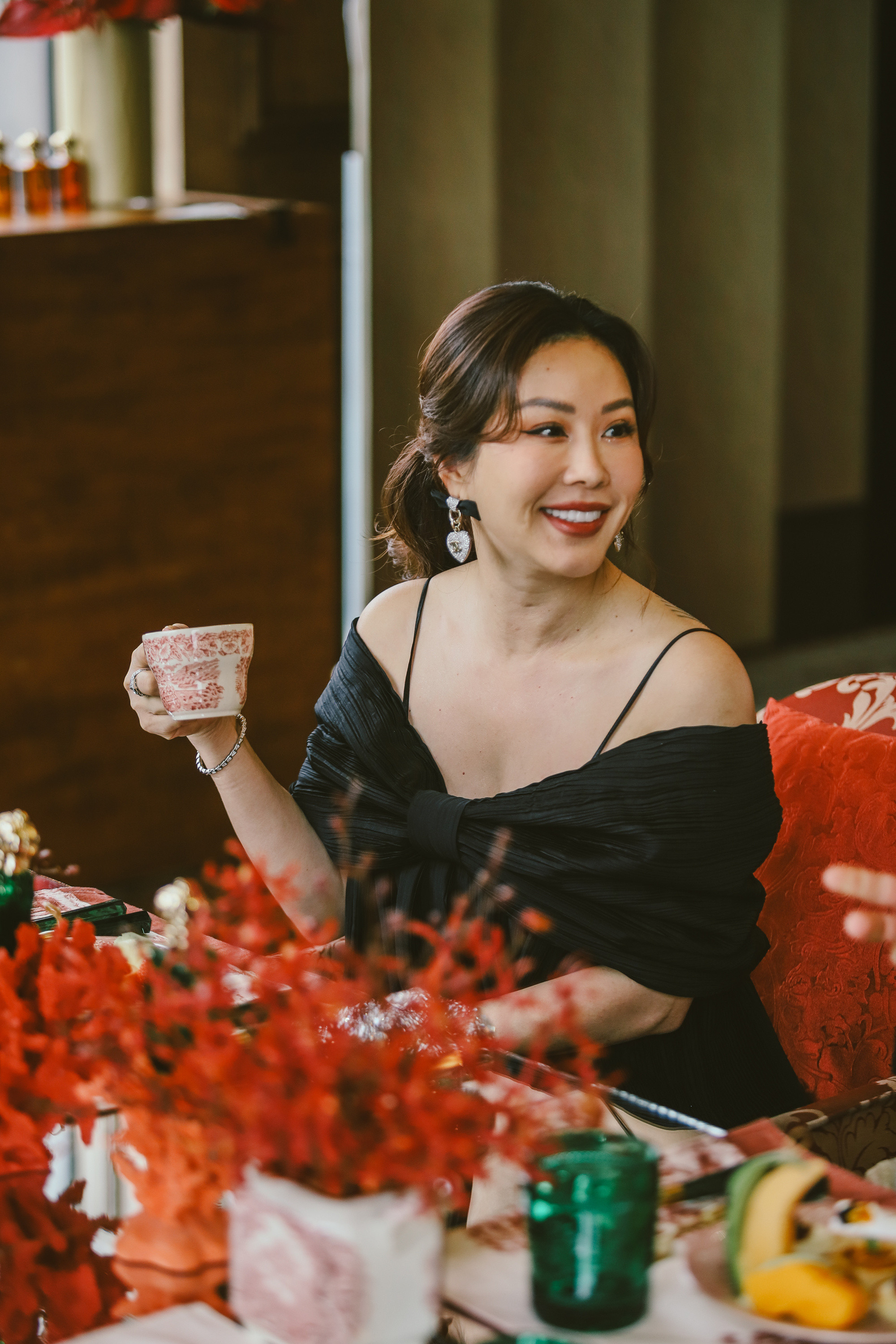 Sự kiện quy tụ dàn người đẹp có niềm đam mê thời trang, thẩm mỹ tinh tế. Người đẹp Thu Hoài diện váy trễ vai cách điệu thành chiếc nơ to trước ngực vừa nữ tính vừa quý phái.Thu Hoài từng chia sẻ sự xuất hiện của doanh nhân Tống Trí góp thêm màu sắc trong cuộc sống bận bịu của doanh nhân 7X.Người mẫu Thùy Dương cân bằng tổng thể bằng cách phối váy cúp ngực đính lông với blazer đồng màu đi cùng mái tóc ombre xanh lá nổi bật.Qua nhiều thăng trầm trong đời tư, Tyhd Thùy Dương hiện hạnh phúc trong tình yêu với bạn trai "soái ca" Michael Trương.Người mẫu Cao Thiên Trang mặc trang phục ôm sát cơ thể màu đen, tạo điểm nhấn bằng chiếc hoa tai hình chữ thập.Á hậu Hoa Đan như nàng thơ trong chiếc đầm liền đỏ hai dây. "Tôi hạnh phúc khi tham gia một bữa tiệc đẳng cấp, gặp gỡ nhiều anh chị đi trước trong nghề và lắng nghe họ chia sẻ nhiều câu chuyện hay", cô chia sẻ với VietNamNet.Hiện Hoa Đan đang dồn sức thực hiện dự án cá nhân quảng bá trang phục truyền thống các dân tộc Việt Nam cũng như tập trung cho năm cuối đại học.Khoảnh khắc ngọt ngào của á hậu sinh năm 2001.Tại sự kiện, nhạc sĩ Hứa Kim Tuyền chia sẻ về ca khúc "Hương" do Văn Mai Hương thể hiện từng tạo xu hướng mạnh mẽ trên mạng xã hội TikTok. "Hương" là ca khúc hiếm hoi khắc họa vẻ đẹp của cô gái trong mùi hương quyến rũ và ái tình nồng cháy của mình.Ca sĩ Quốc Thiên diện nguyên cây denim họa tiết Louis Vuitton kết hợp hoa sang trọng.Stylist Hoàng Ku thân thiết Nicky Khánh Ngọc - tác giả tựa "Cuốn sách của Nàng thơ" được phái nữ yêu thích.