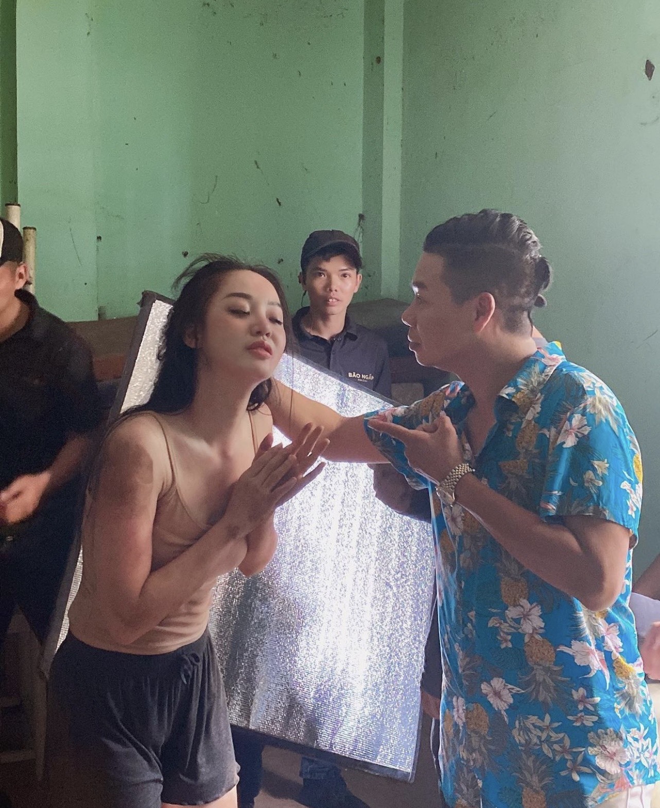 | Những cảnh quay "bầm dập" khiến Hoàng Hải Thu cảm thấy khó khăn. |