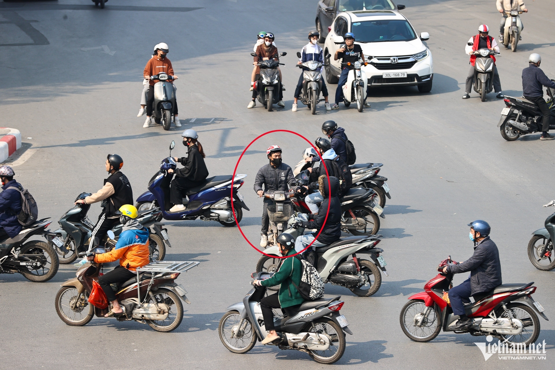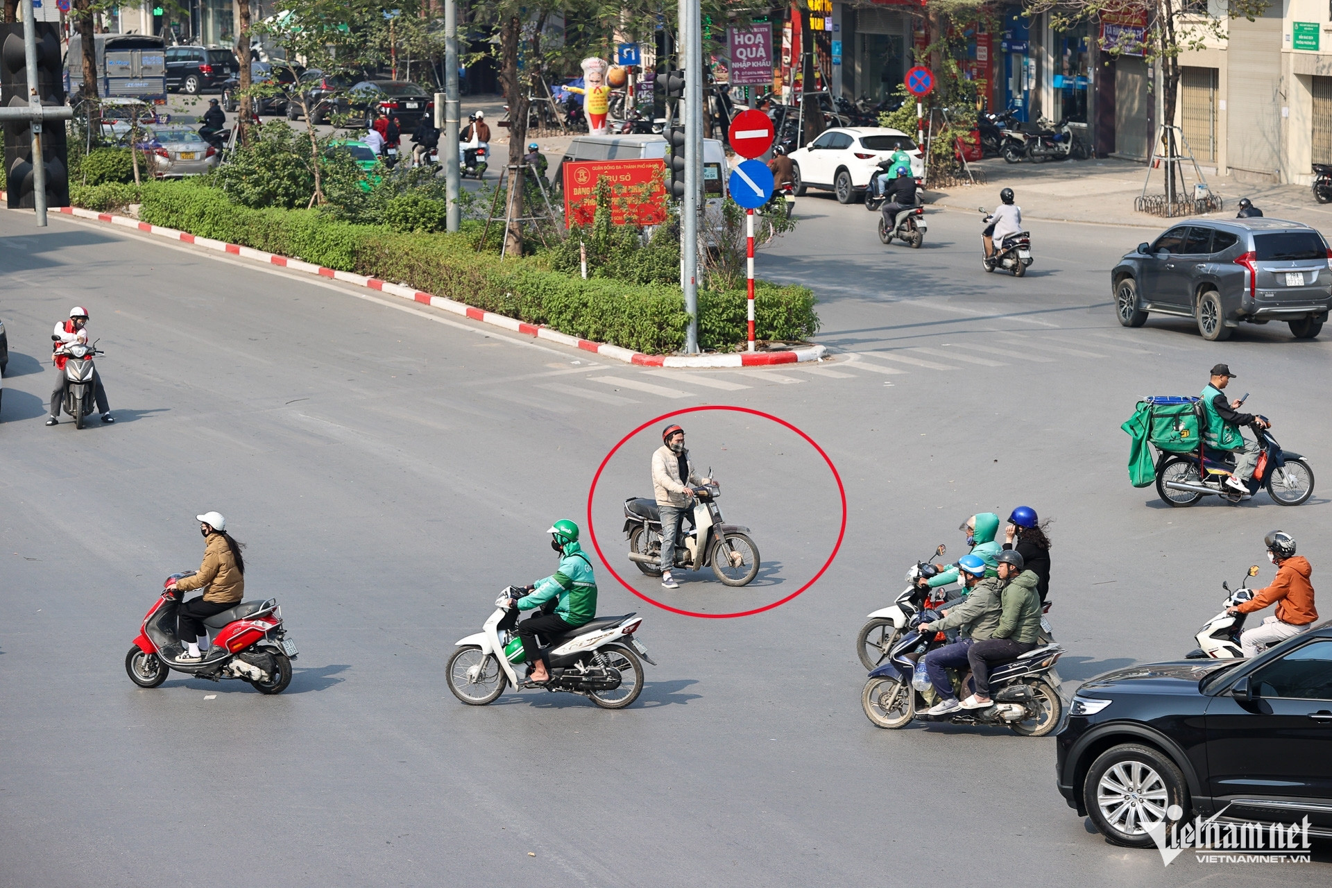 Tại ngã tư Xã Đàn - Phạm Ngọc Thạch, khi vắng bóng cảnh sát giao thông, nhiều người đi xe máy vẫn vượt đèn đỏ.