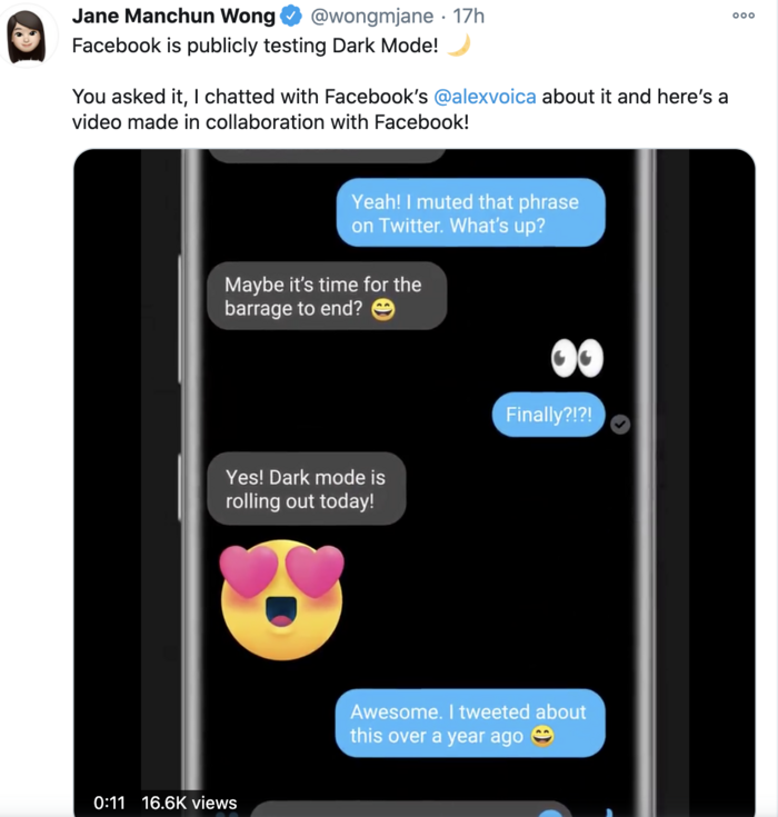 Cụ thể, Jane Manchun Wong, người thường xuyên phát hiện ra các tính năng mới trên nhiều sản phẩm của Facebook thông qua các đoạn mã, đã đăng tải thông tin về cuộc trò chuyện của cô cùng đội ngũ Facebook trên Twitter.