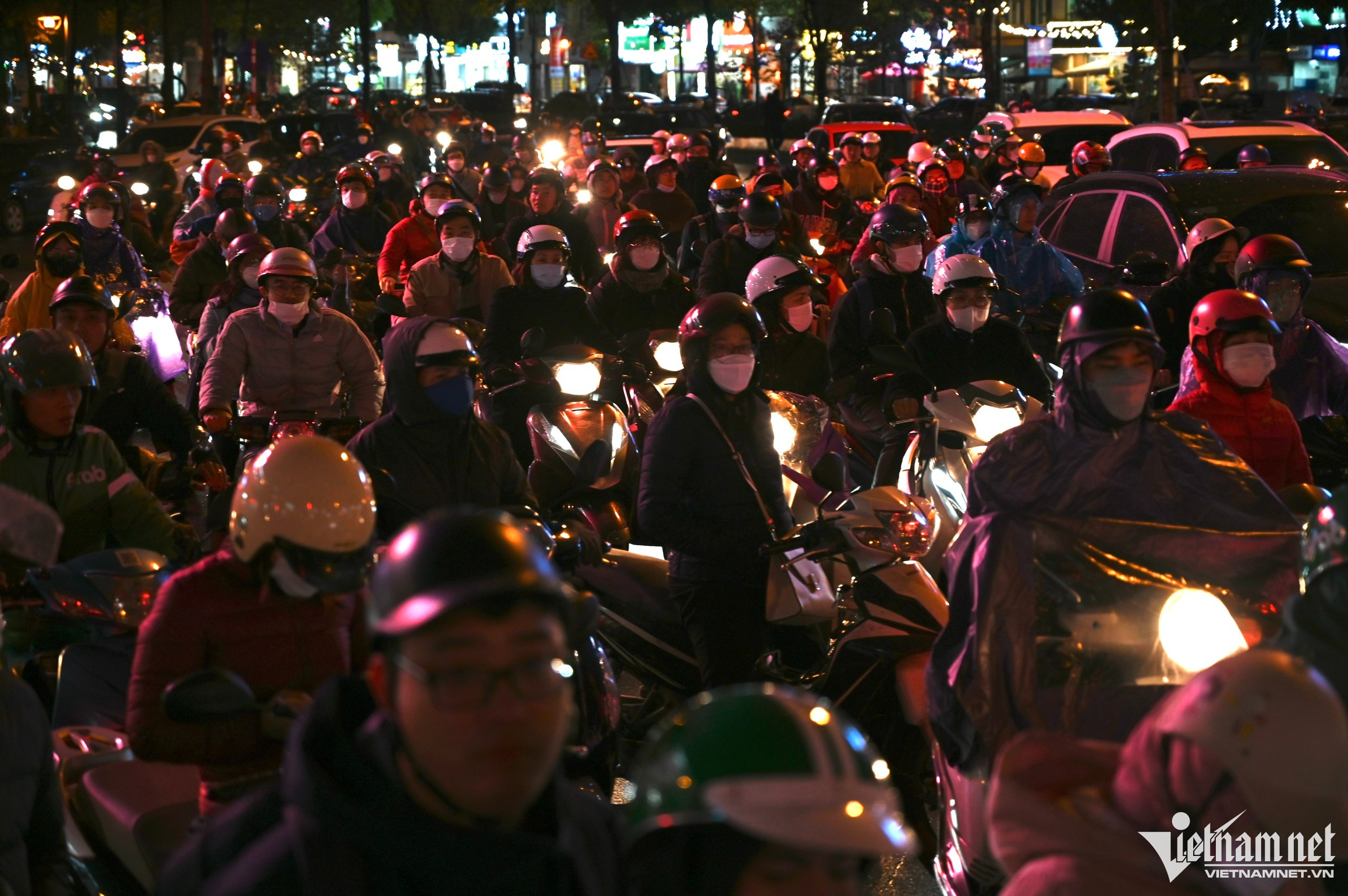 Trong ngày đầu thời tiết Hà Nội giá lạnh trở lại với 13 độ C, mưa rả rích suốt từ sáng đến tối, các ngả đường trung tâm thủ đô lại ùn tắc kéo dài. Hình ảnh tại đường Nguyễn Xiển lúc 18h30.