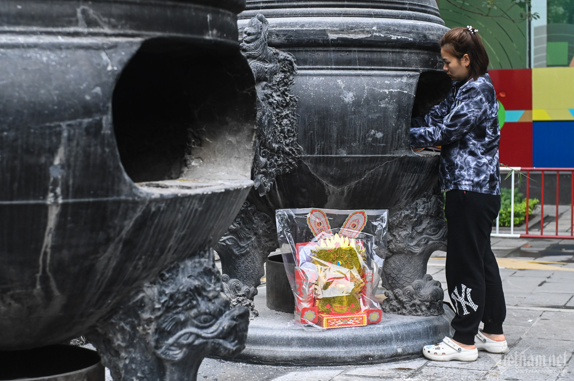 Không chỉ hóa vàng mã, những ngày này người dân còn dọn ban thờ, hóa chân nhang. Tại một khu tập thể nằm trên đường Đội Cấn, những hộ dân ở đây đều có thùng đốt vàng mã riêng để đảm bảo an toàn phòng cháy chữa cháy.
