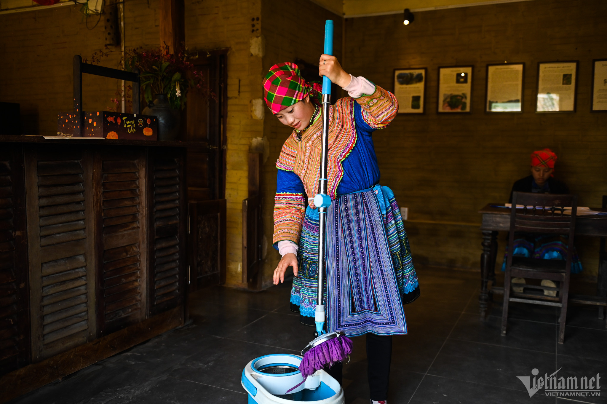 Chị Vàng Thị Hương làm việc tại một quán cà phê trong thôn Lô Lô Chải được gần hai tháng nay. Trước đây ngoài làm nương rẫy, chị ở nhà dệt vải, thỉnh thoảng đi rừng hoặc làm thêm việc tay chân gì đó để gia tăng thu nhập. "Làm quán cà phê mình thấy nhẹ nhàng hơn đi rừng, lên nương mà thu nhập lại ổn định", chị Hương nói.