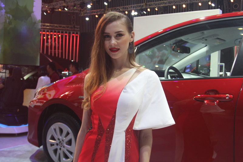 Không chỉ gây chú ý bằng hàng loạt mẫu xe hơi mới hiện đại, triển lãm ô tô còn "nóng" bởi dàn người mẫu Tây cực xinh với những màn trình diễn gợi cảm.